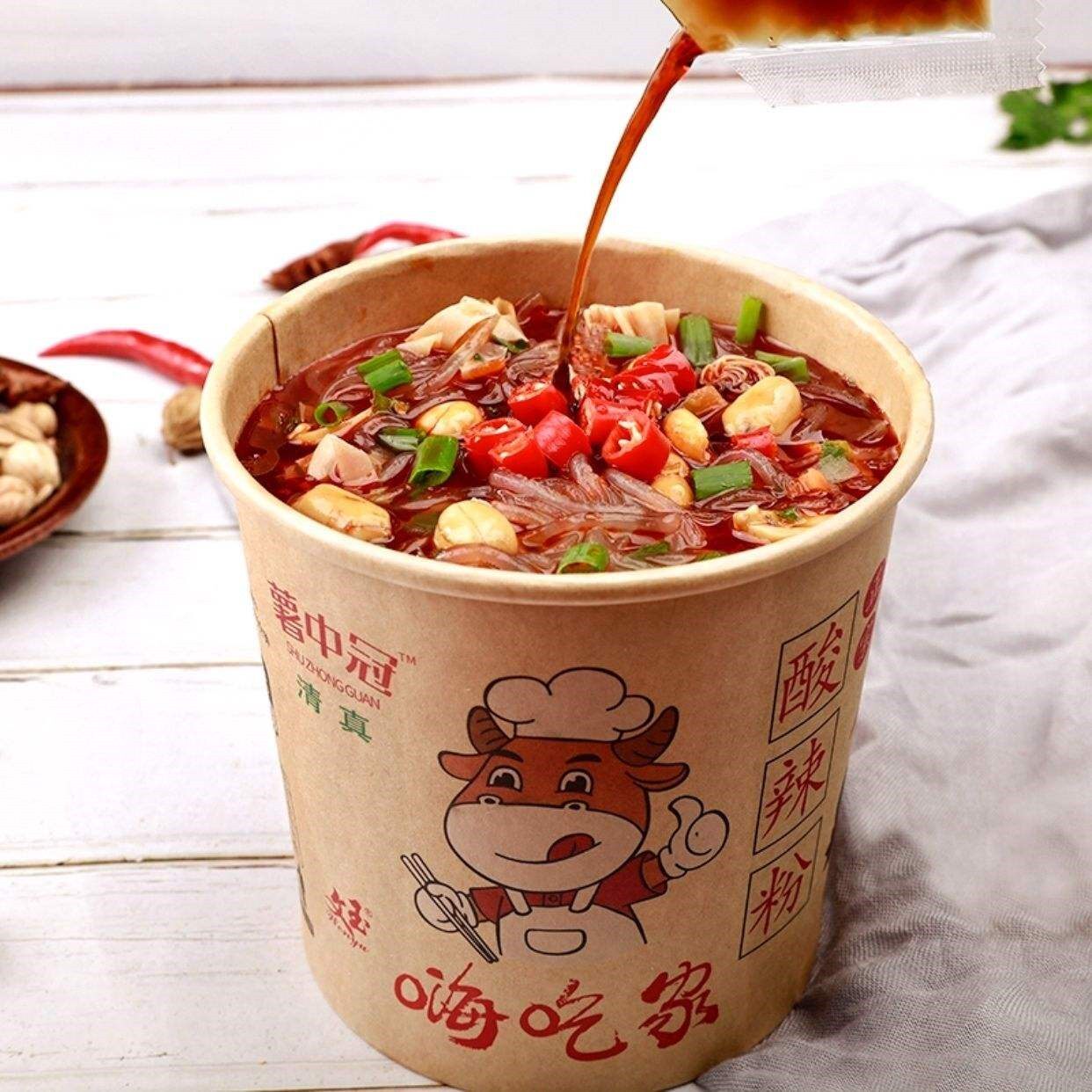 📚 抖音薯中冠酸辣粉桶装整箱红薯粉丝速食宵夜文玉酸辣粉正品
