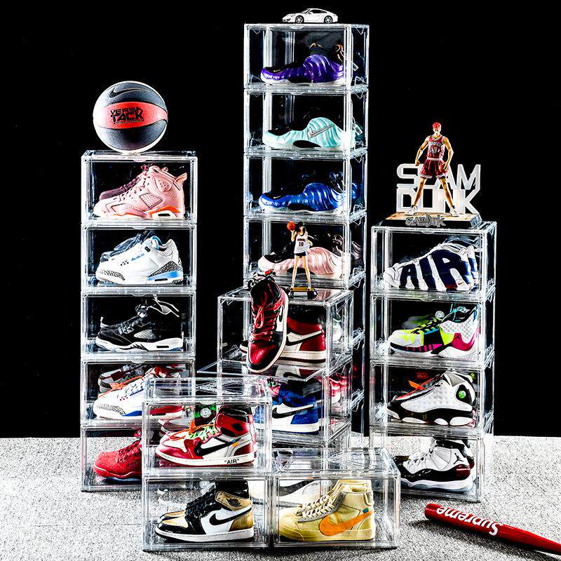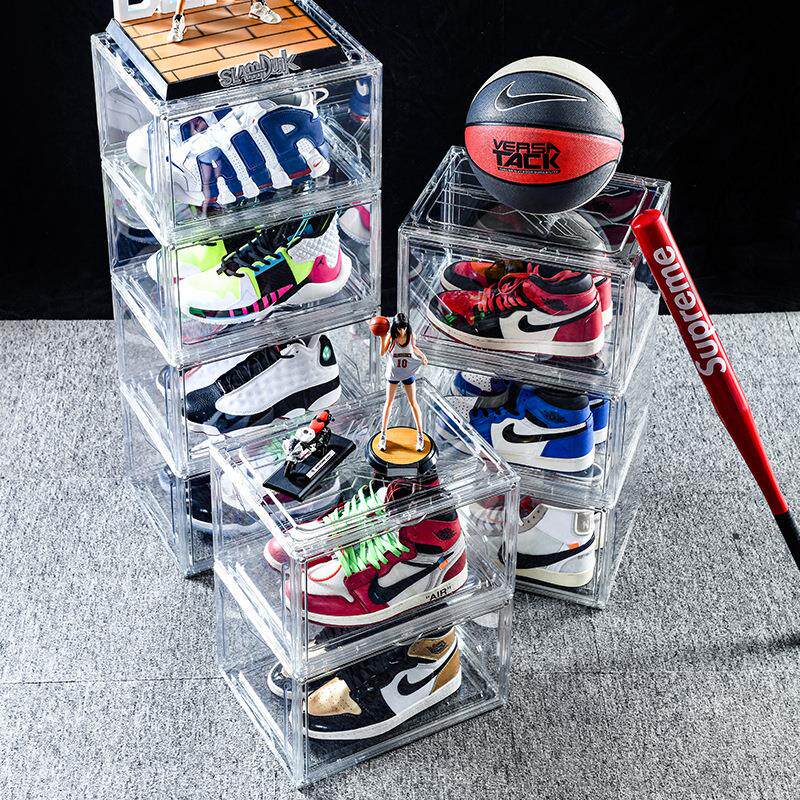 📚 组装式侧开门高透明鞋盒大号全透男女运动鞋墙可折叠叠加收纳鞋柜