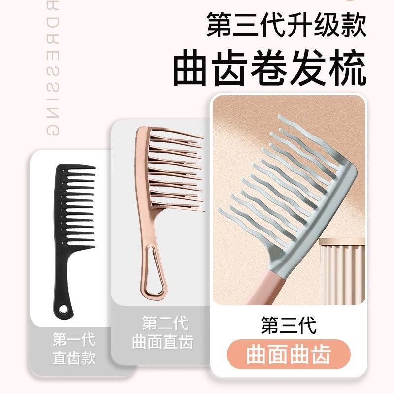 📚 双排波浪齿卷发梳不打结顺发女士大齿梳子烫发专用曲宽齿梳防静电