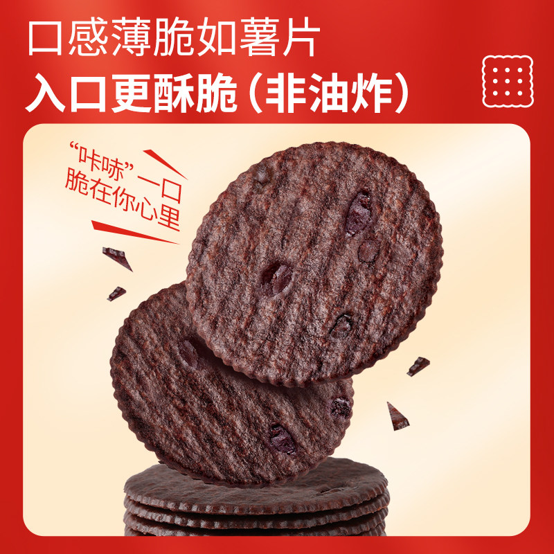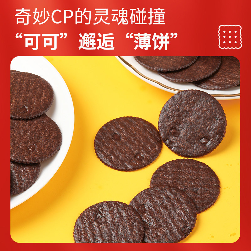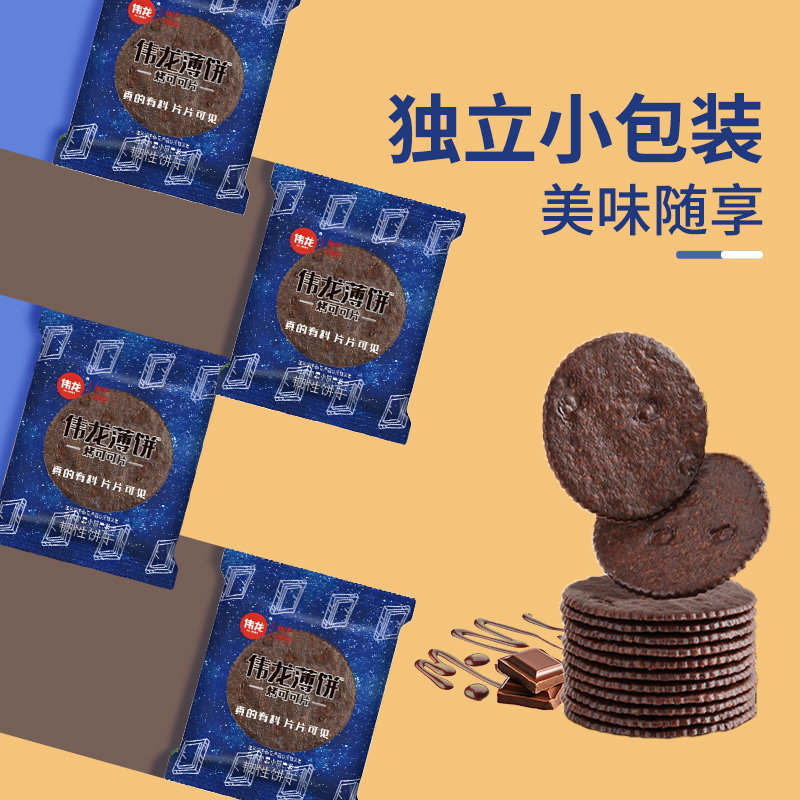 📚 伟龙烤可可薄脆饼干黑巧克力小圆饼华夫脆片下午茶早代餐年货零食