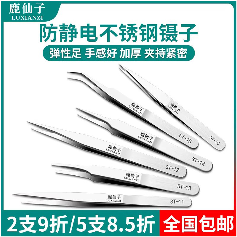 📚 鹿仙子不锈钢镊子手机维修专用工业精密细尖头弯嘴小镊子工具套装