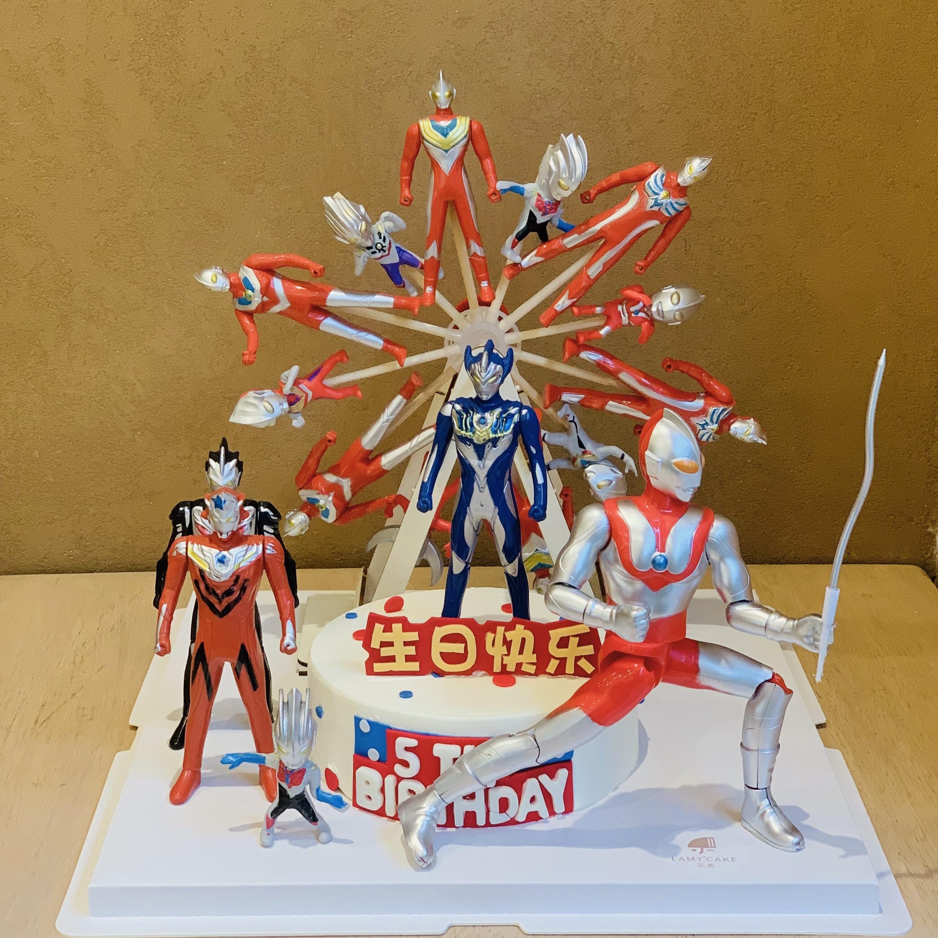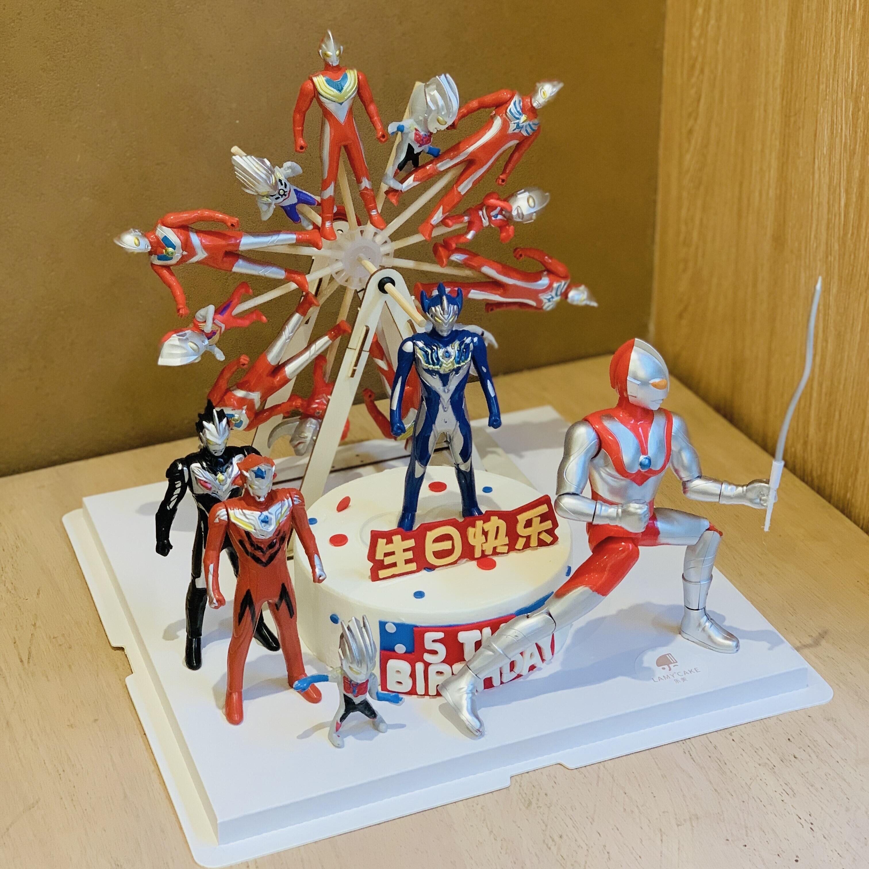 📚 网红旋转摩天轮奥特曼蛋糕装饰插件超人男孩儿童生日烘焙甜品摆件