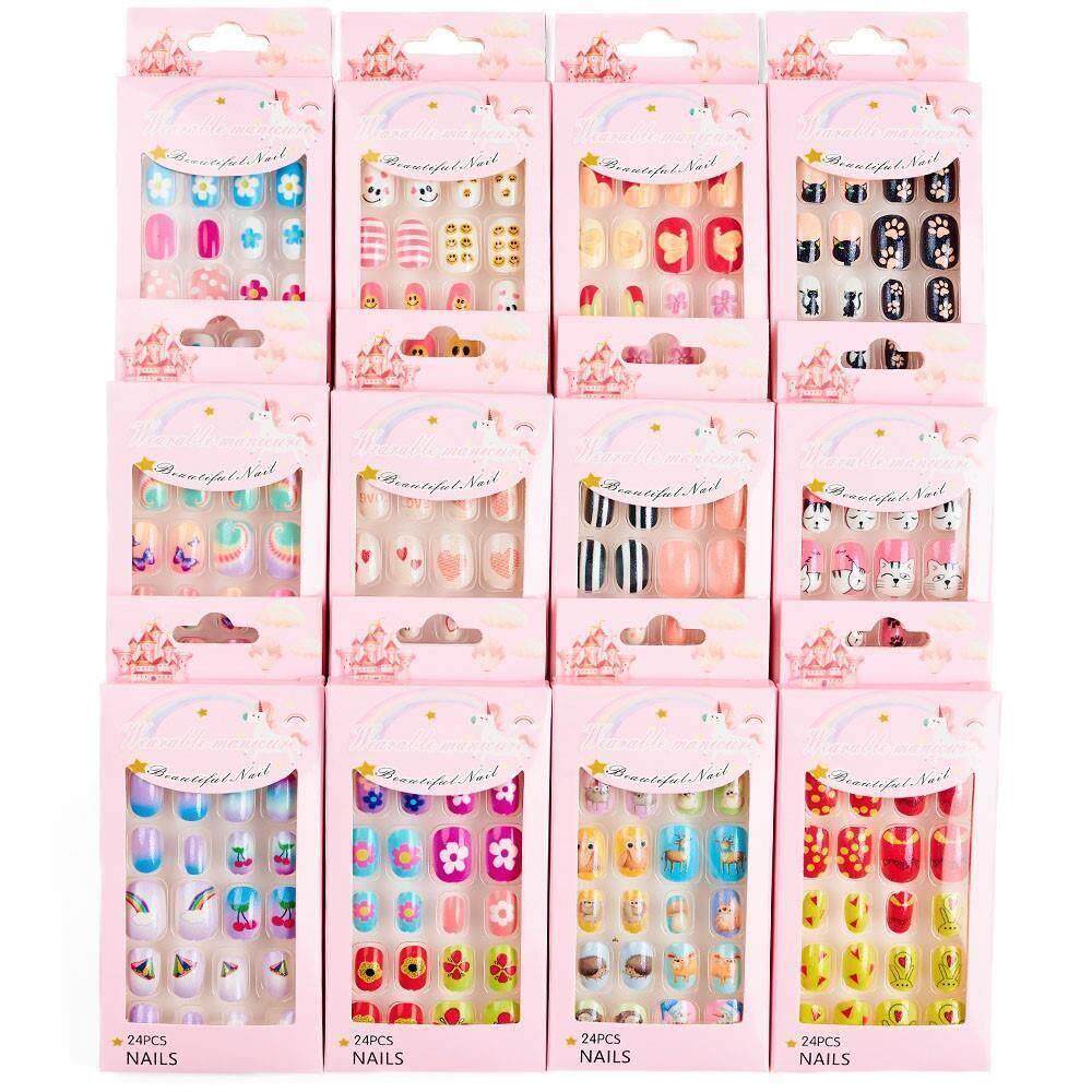 📚 Children Press on Nails*24Pcs Fake Nails Tips for Kids Acry