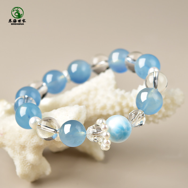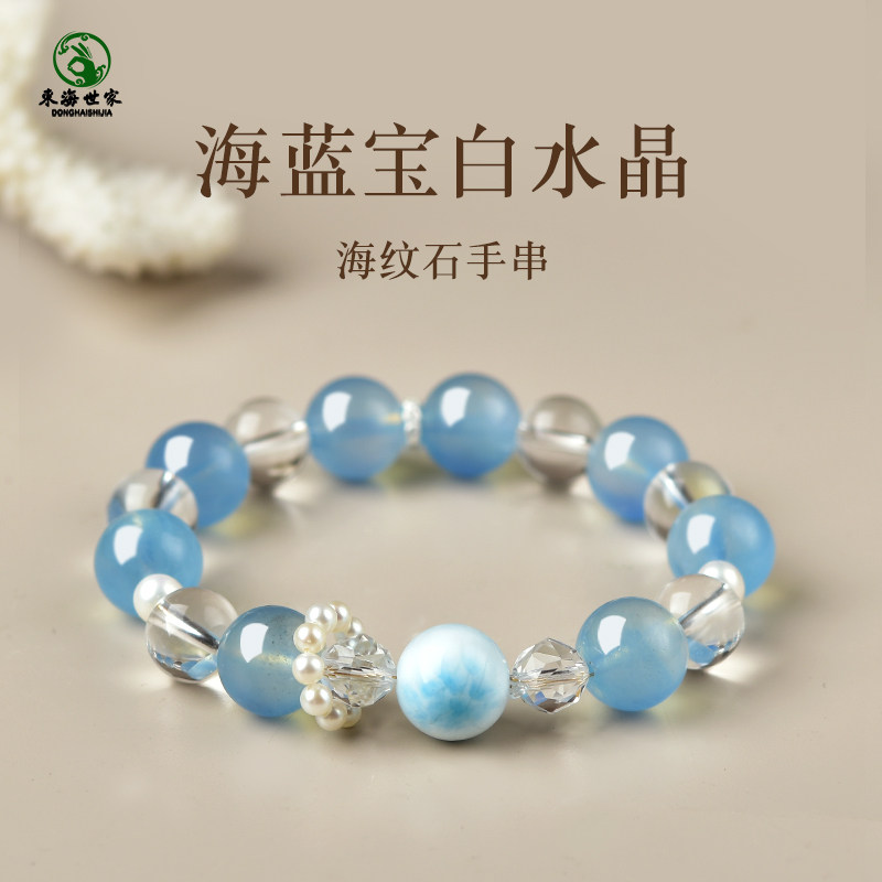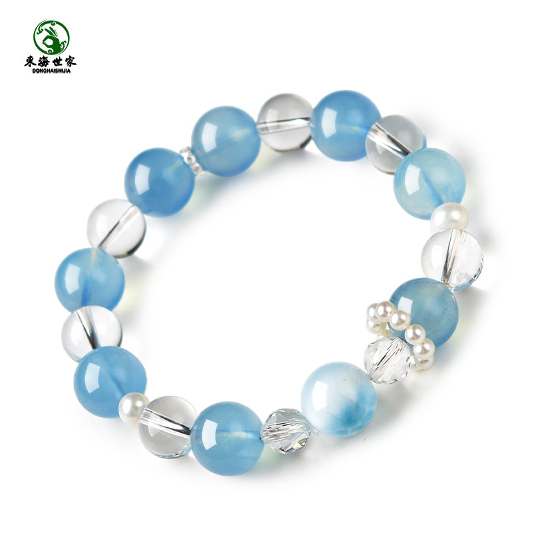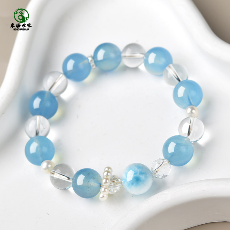 📚 海蓝宝白水晶手串东海宝蓝水晶玛瑙玉髓海纹石散珠子冰种润蓝手链