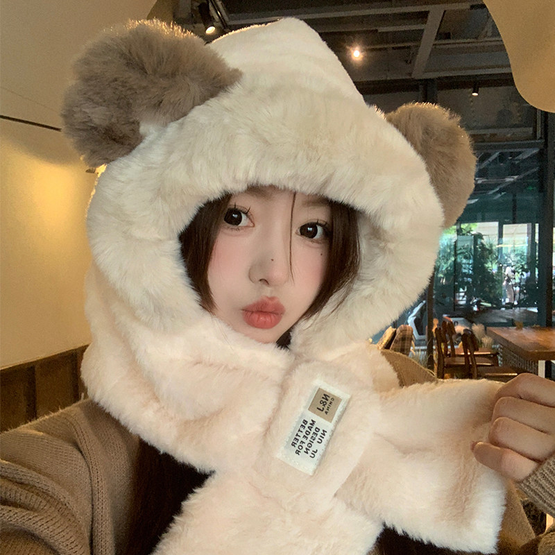 📚 虞书欣同款保暖护耳帽子围巾一体两件套冬季加厚雷锋帽女秋冬围脖
