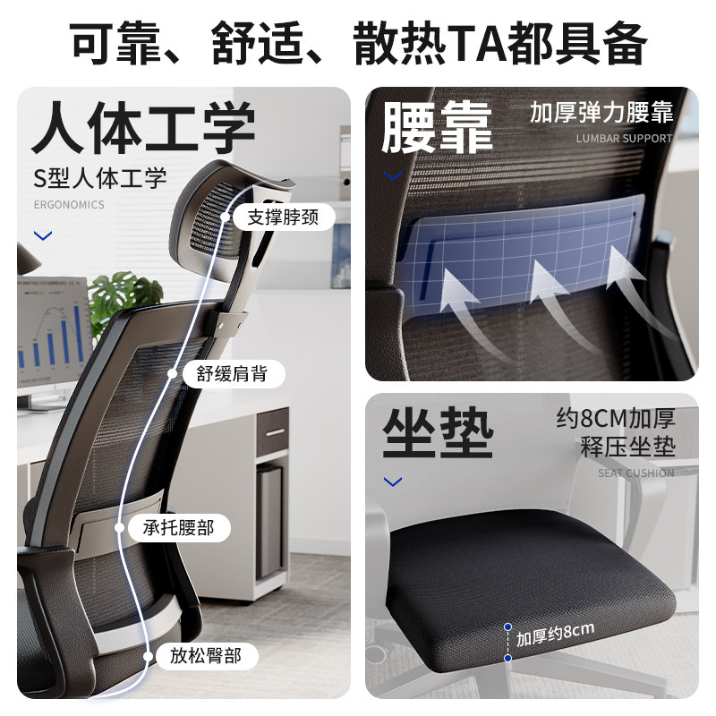 🎉大家好,今天我要给大家种草一款超赞的办公椅子——办公椅子办公室舒适久坐电脑椅家用职员会议工位座椅靠背升降转椅!👏