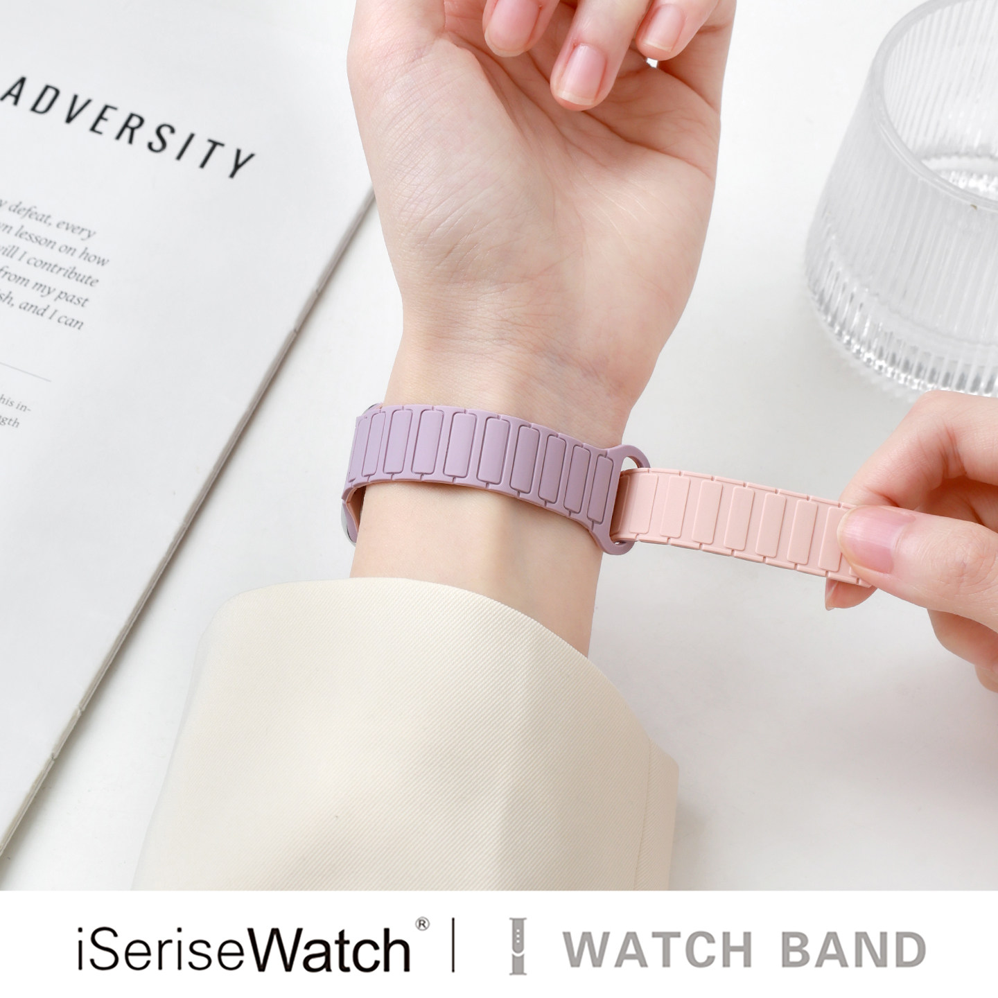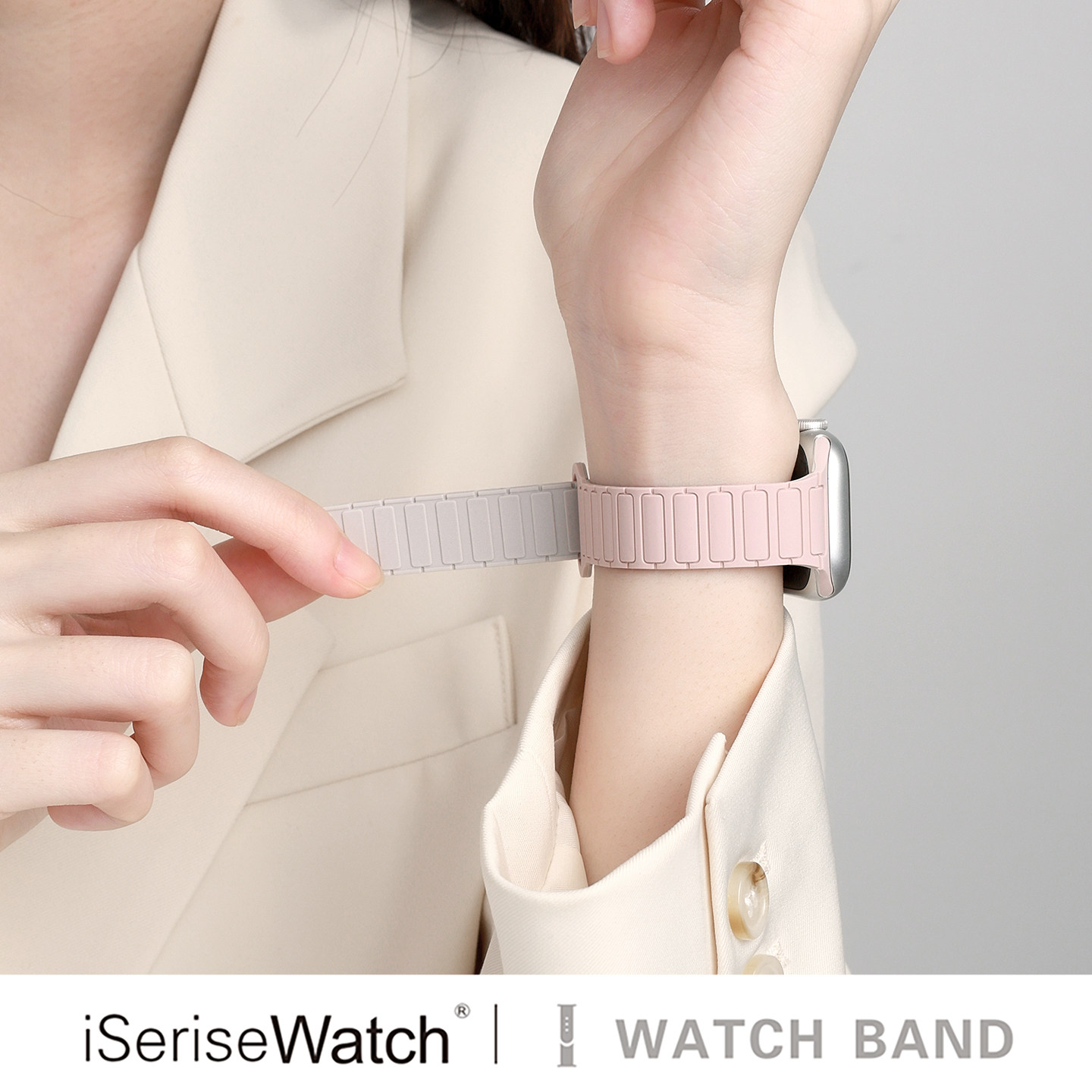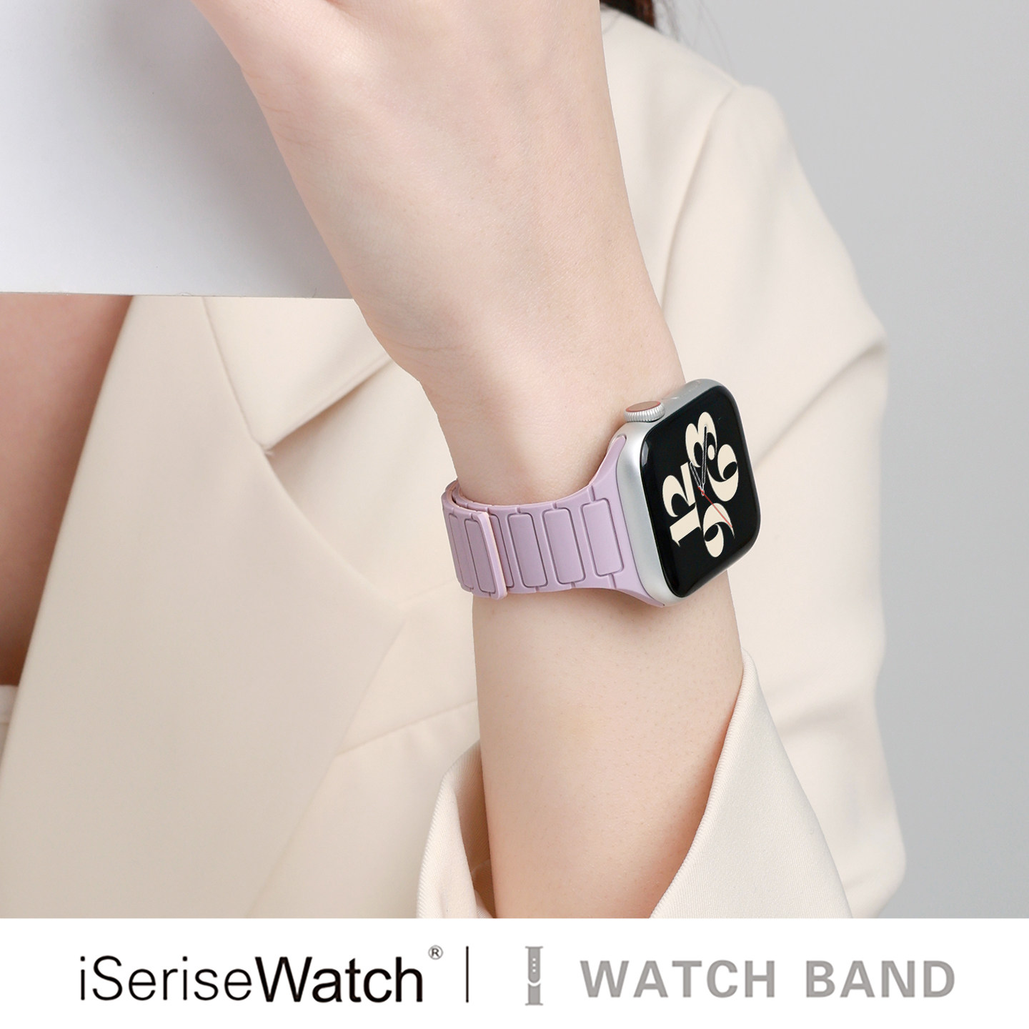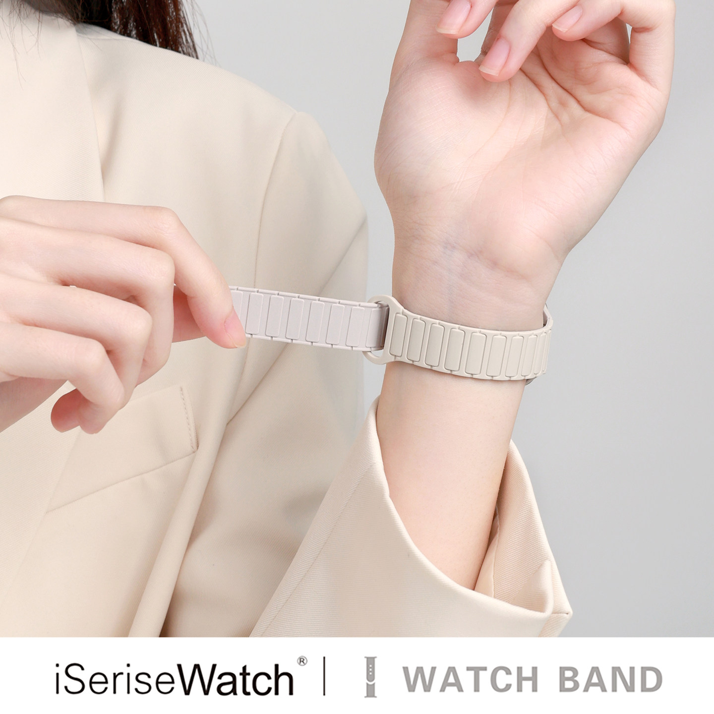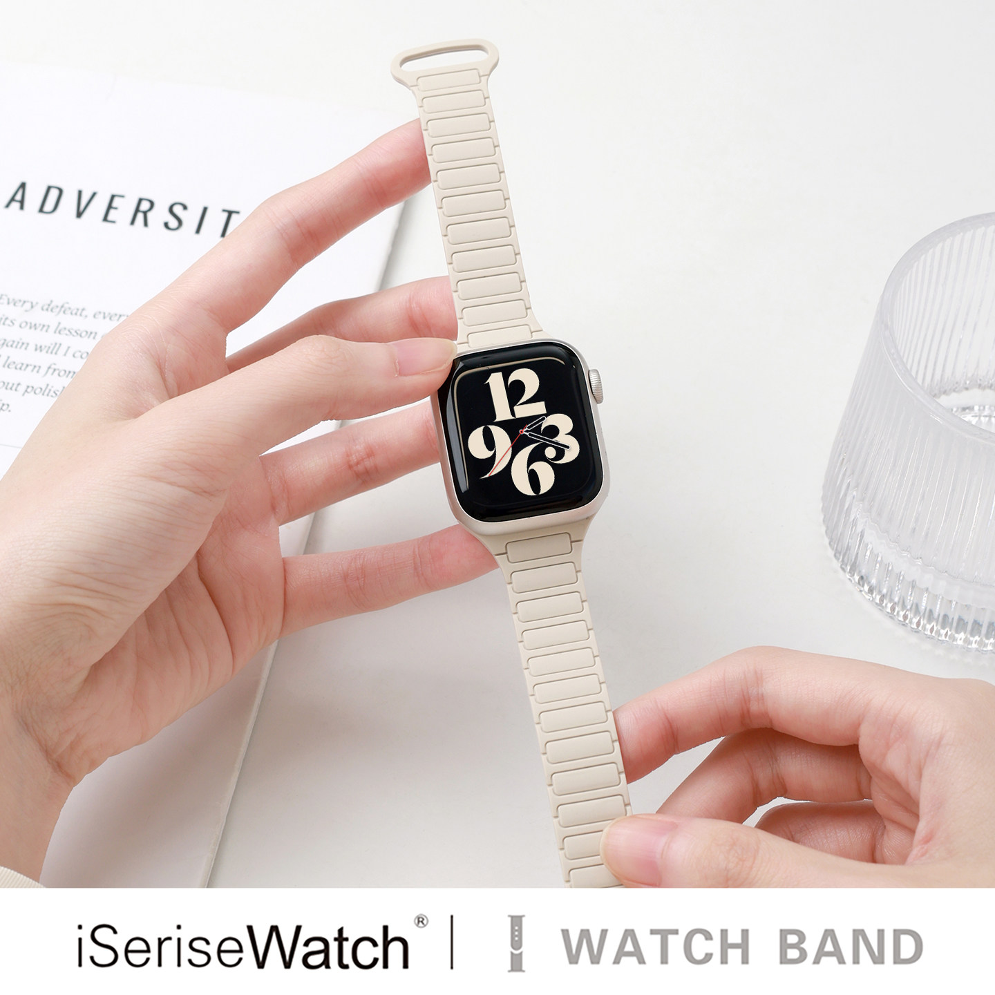 📚 iserisewatch适用iWatchs11表带苹果手表10代夏天透气Applewatchs9细款磁吸硅胶表带女Ultra运动SE7/8小蛮腰