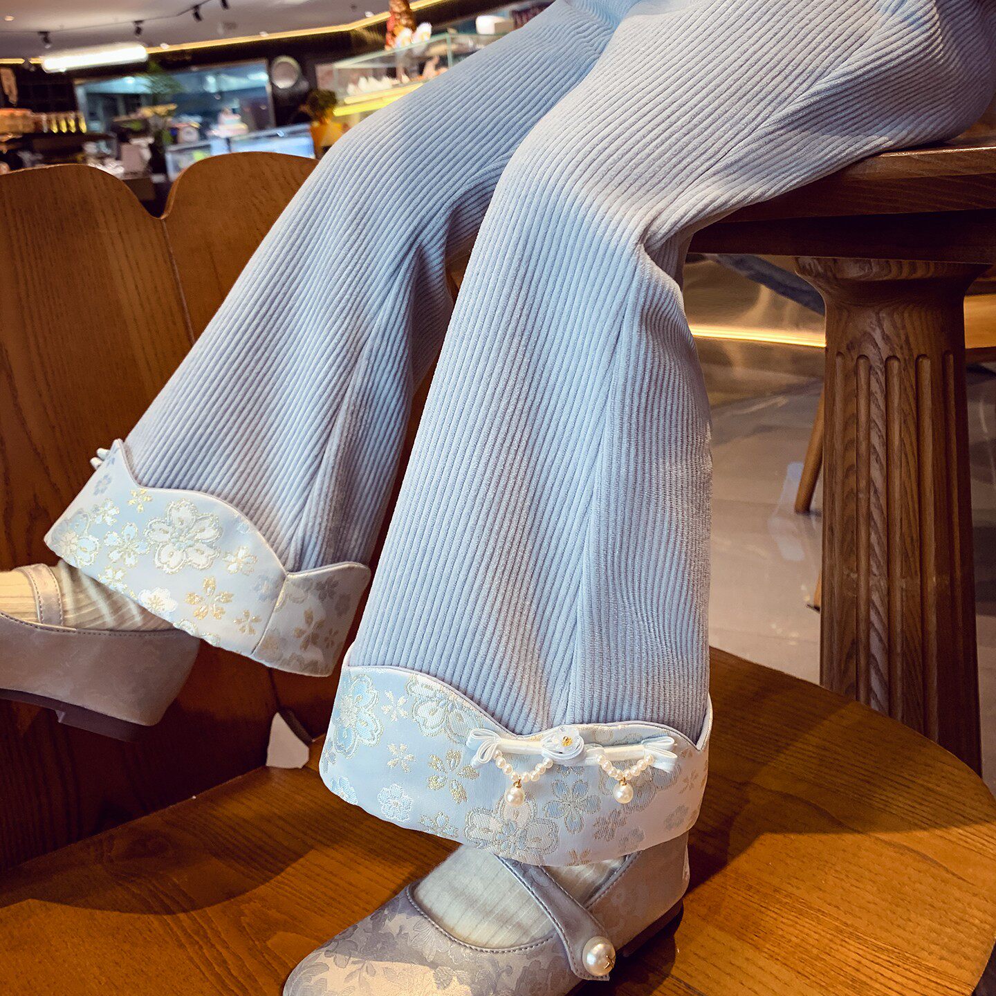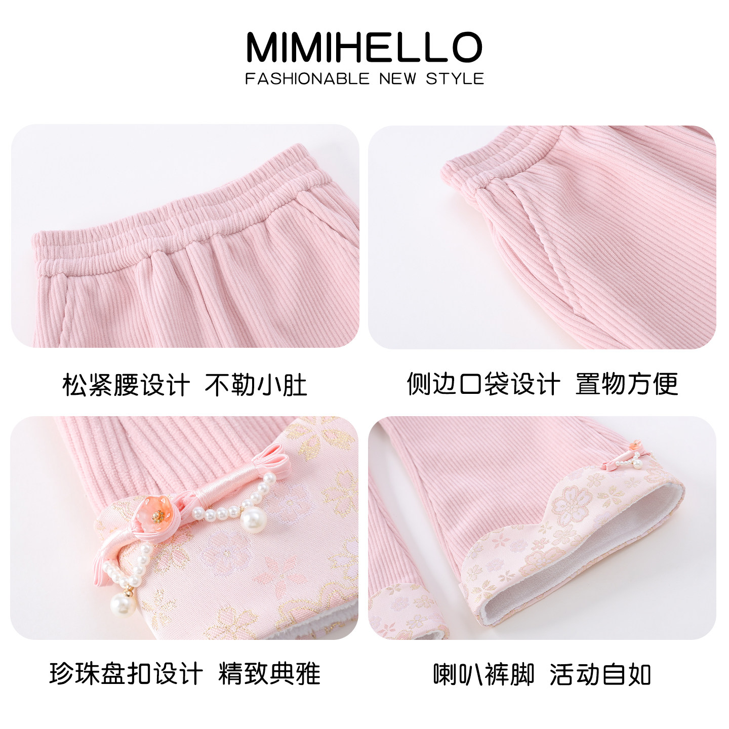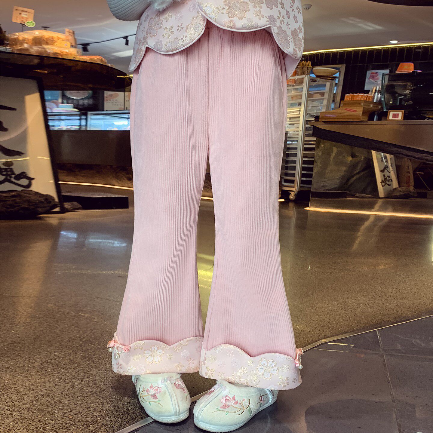 📚 女童加绒喇叭裤冬装2025新款儿童新中式国风欧绵绒裤子女孩马蹄裤