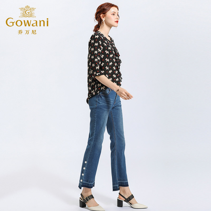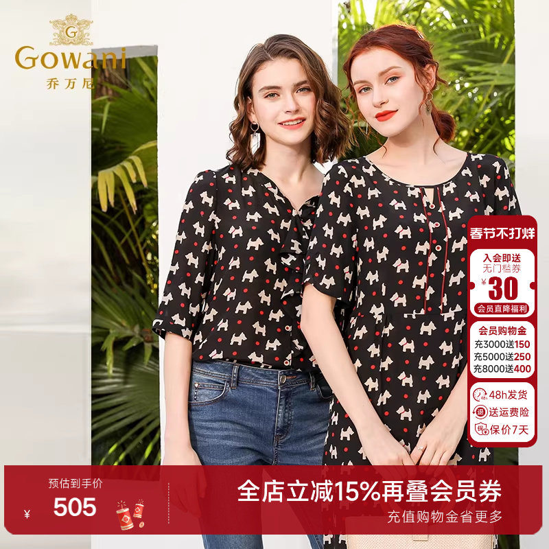 📚 乔万尼商场夏装宽松时尚气质印花桑蚕丝衬衫真丝重工双绉上衣女士