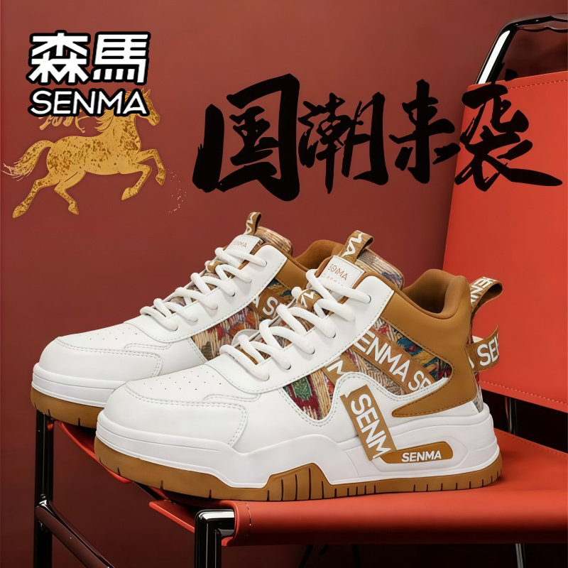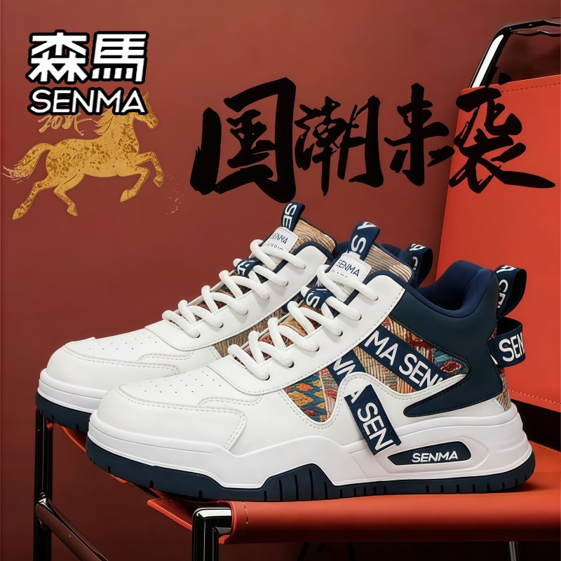 📚 森马“马年限定”男女鞋情侣款冬季加绒高帮运动休闲增高小白板鞋