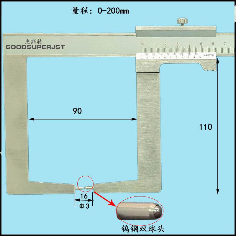 📚 圆柱测头外沟槽卡尺钢轨腰厚游标卡尺铁路用卡尺0-200mm×110mm