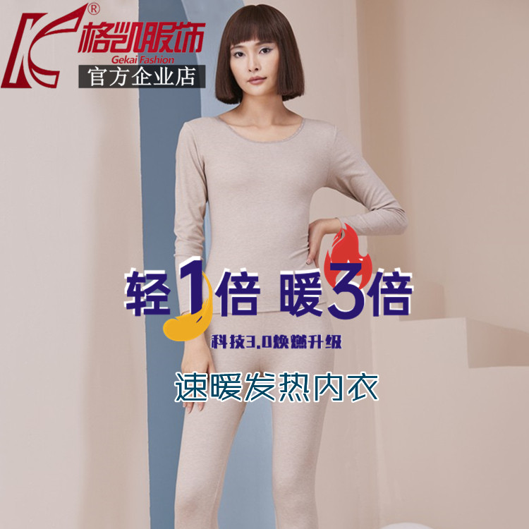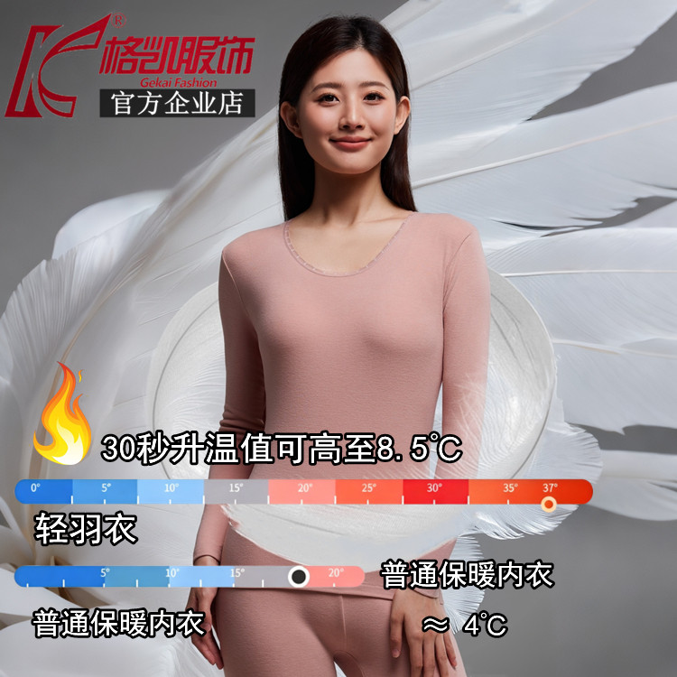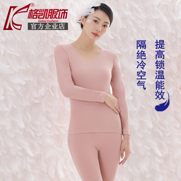 📚 格凯女士超微轻羽衣恒温发热保暖内衣中厚磨毛大圆领花边秋衣秋裤