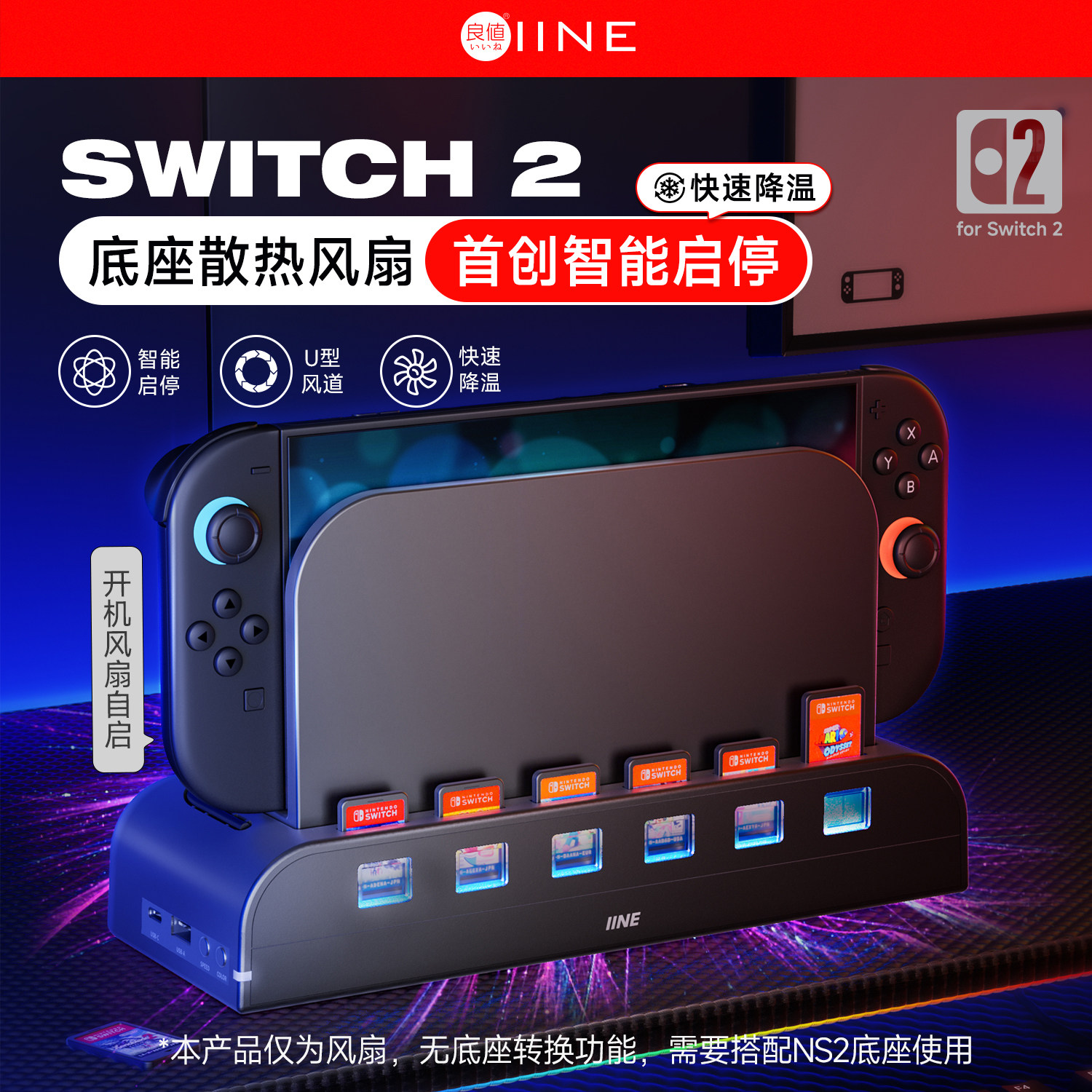 📚 良值(IINE)适用任天堂Switch2主机散热风扇 智能启停降温散热器 卡带收纳架 RGB灯电竞桌搭 NS2配件