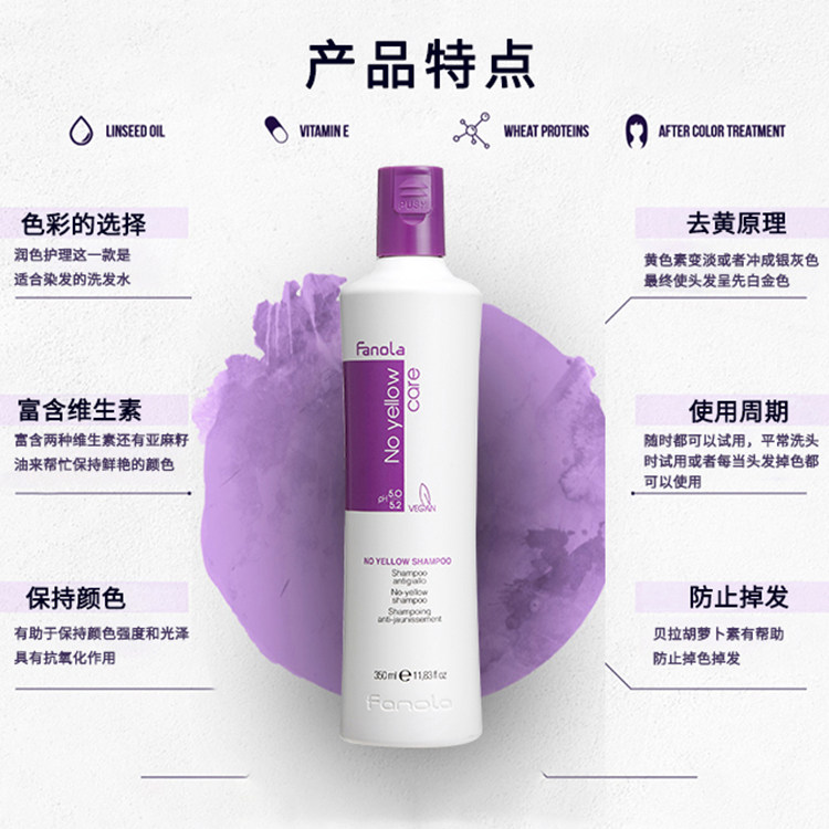 📚 意大利fanola去黄洗发水紫色发膜锁色固色护色移黄专用护理不伤发