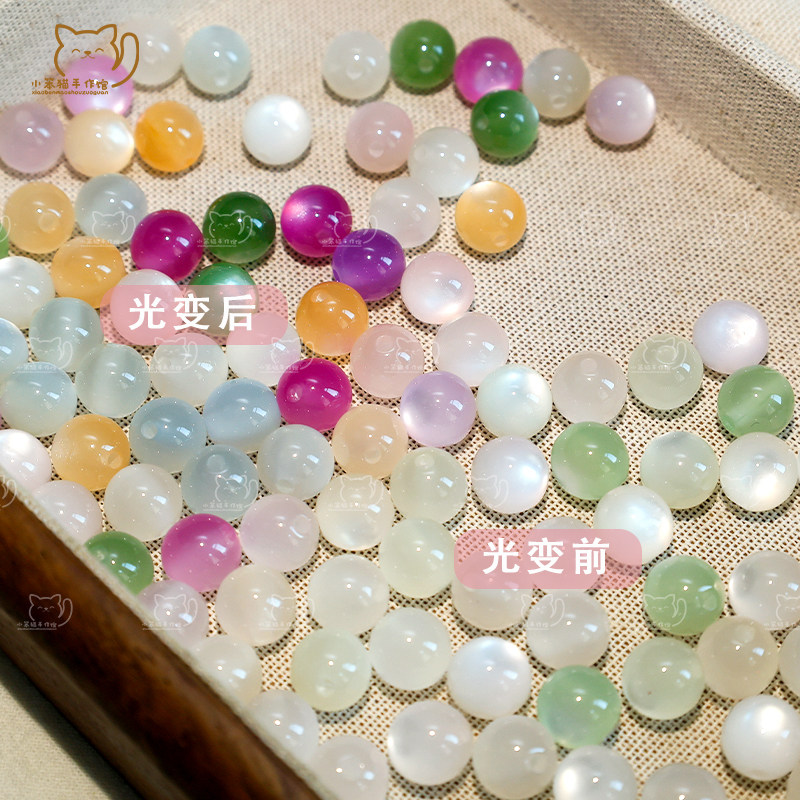 📚 50颗光变树脂猫眼圆珠散珠diy手工串珠手链手机链钥匙链饰品配件