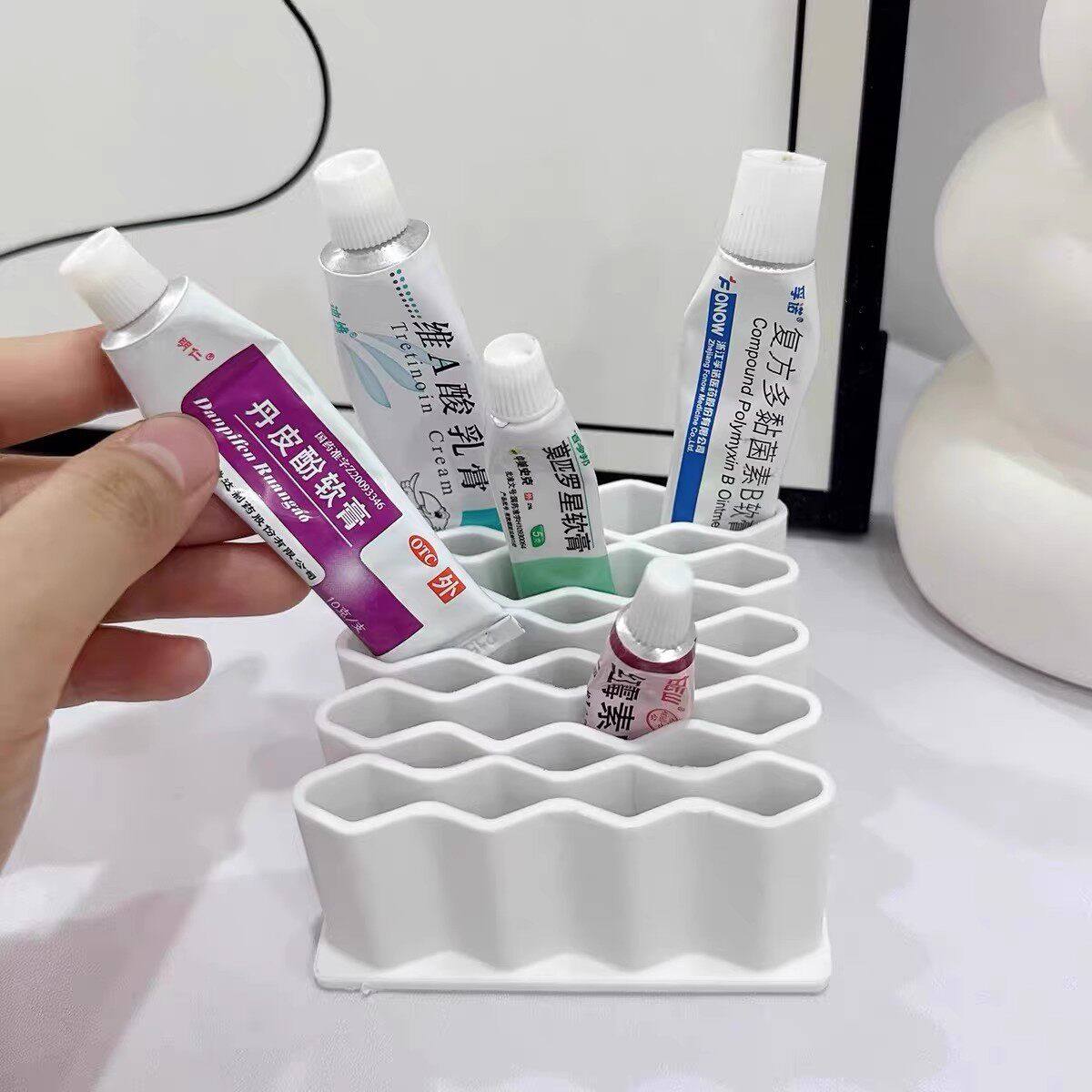 📚 药膏收纳盒分格桌面乳膏整理神器多功能放软膏小型管状药品置物架