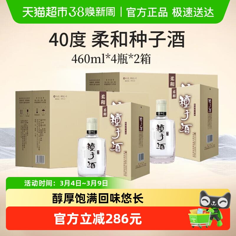 📚 金种子酒40度柔和460ml*4瓶*2箱浓香型白酒纯粮食酒自饮送礼礼盒