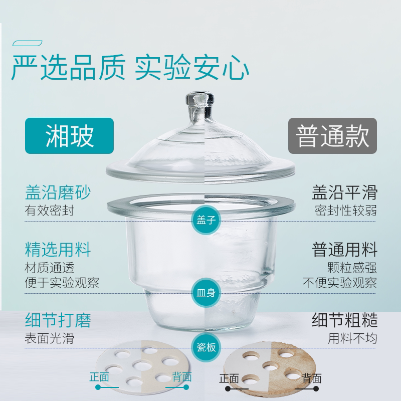 📚 湘玻玻璃干燥器附瓷板物品防潮干燥皿实验室真空干燥器透明150mm