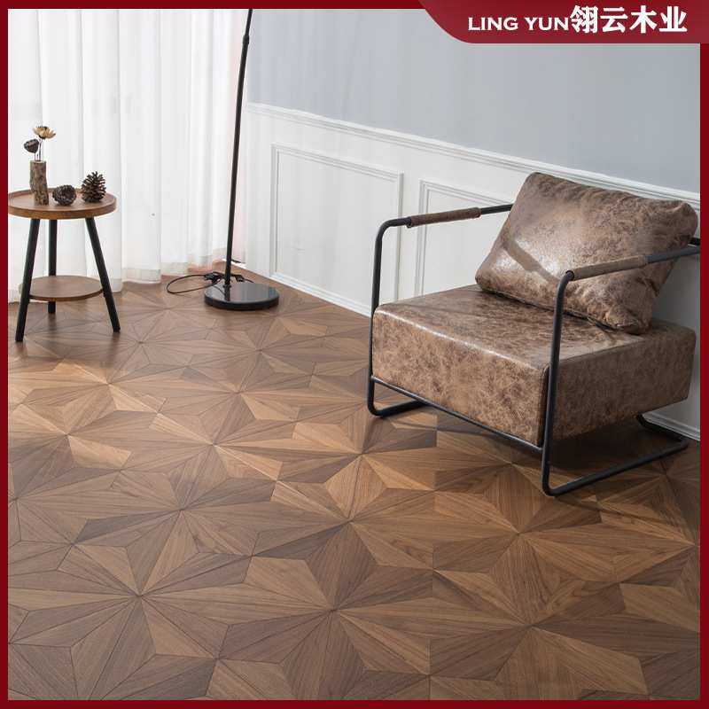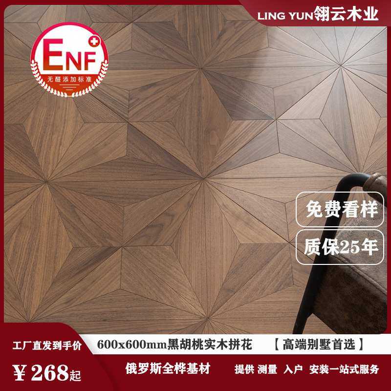 📚 黑胡桃全桦多层实木方形拼花地板新中式欧式古典风600x600mm地暖