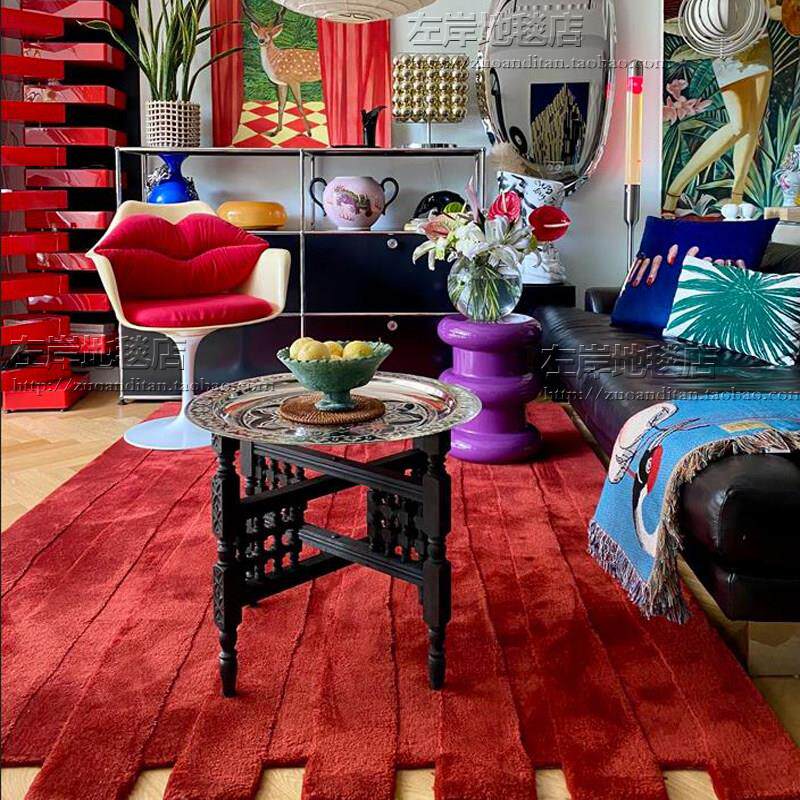 📚 覆古艺FNT术色蓝色体条纹客厅茶几地红毯立异形卧室书房床衣帽间