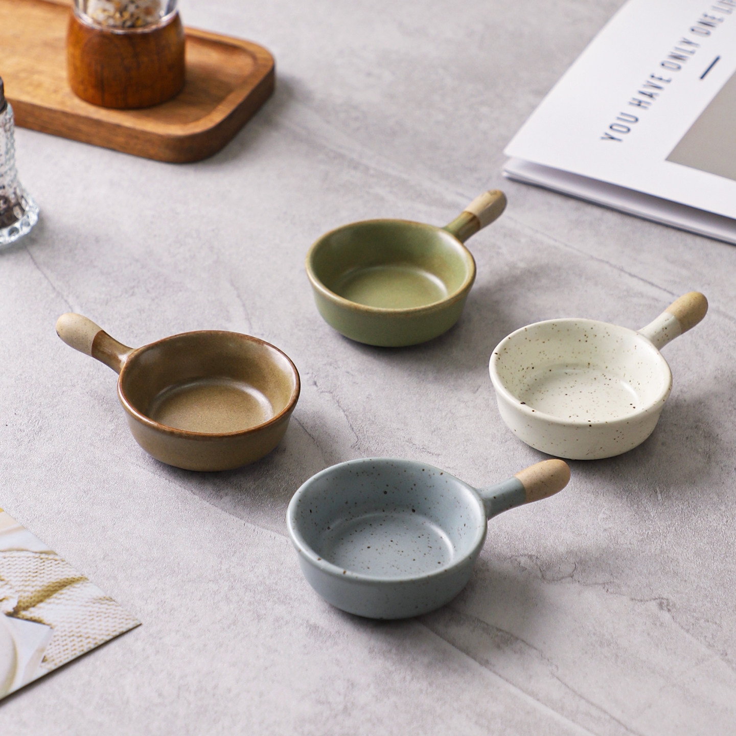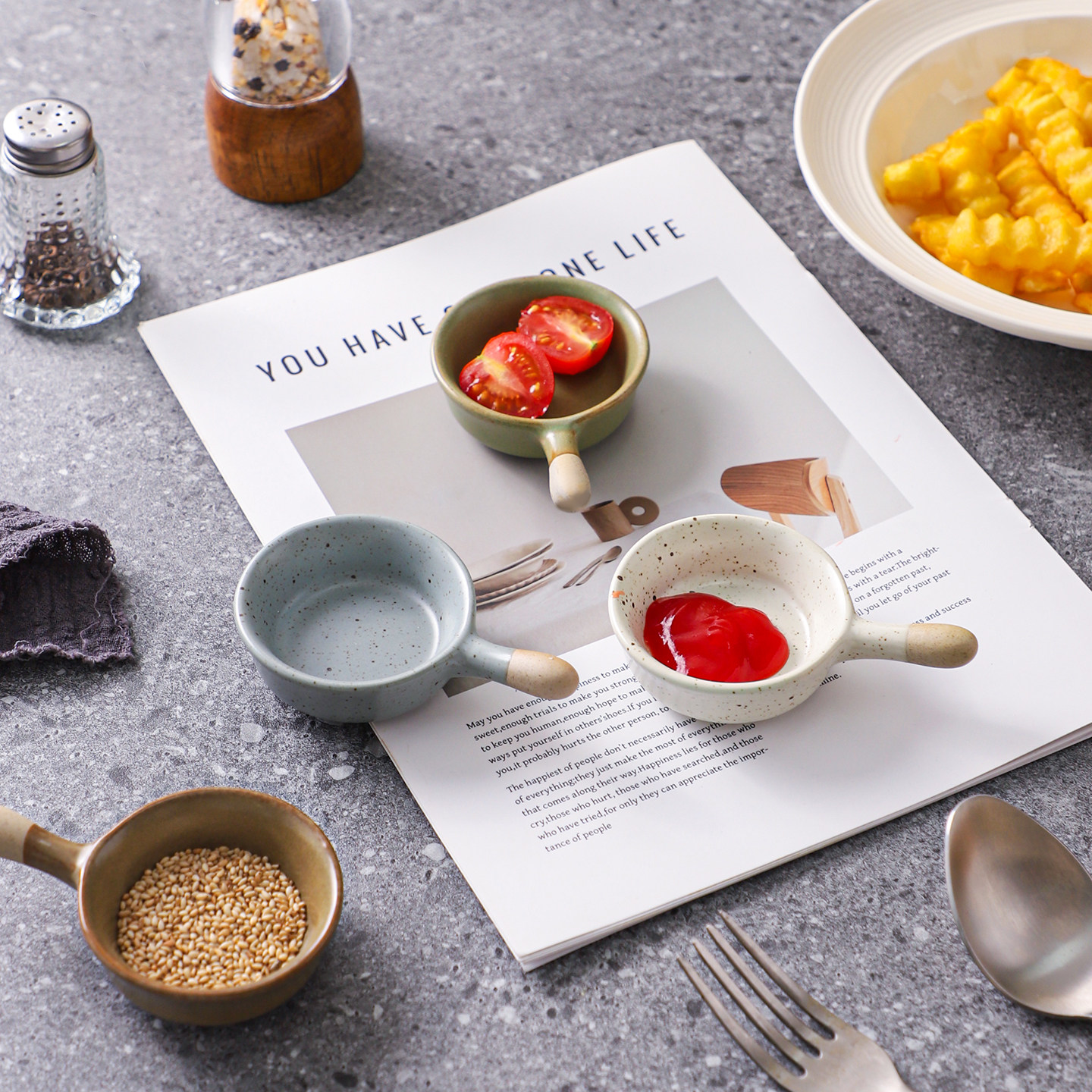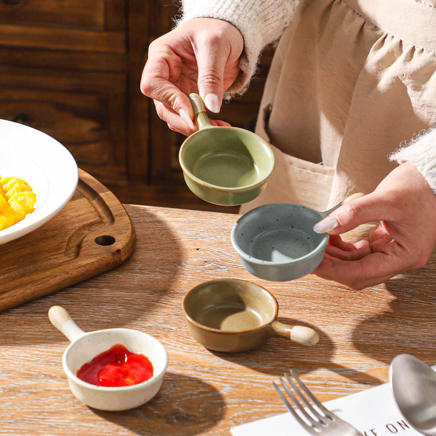 📚 舍里复古窑变陶瓷把手蘸料碗家用高温瓷小菜调味碟醋碟味碟小盘子