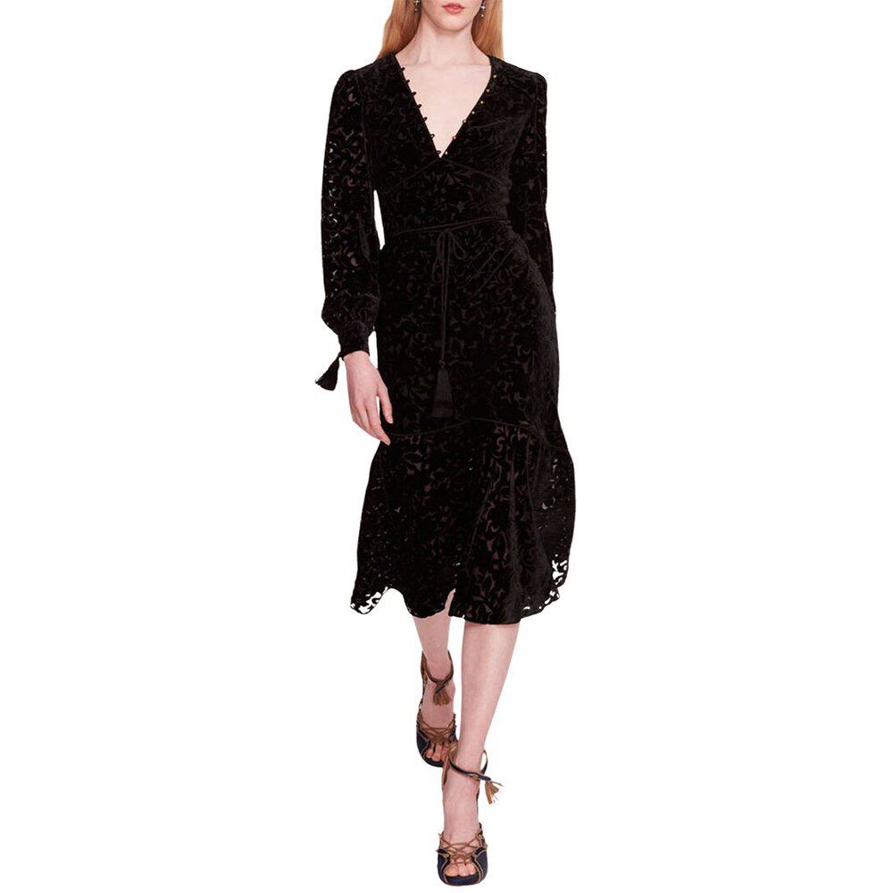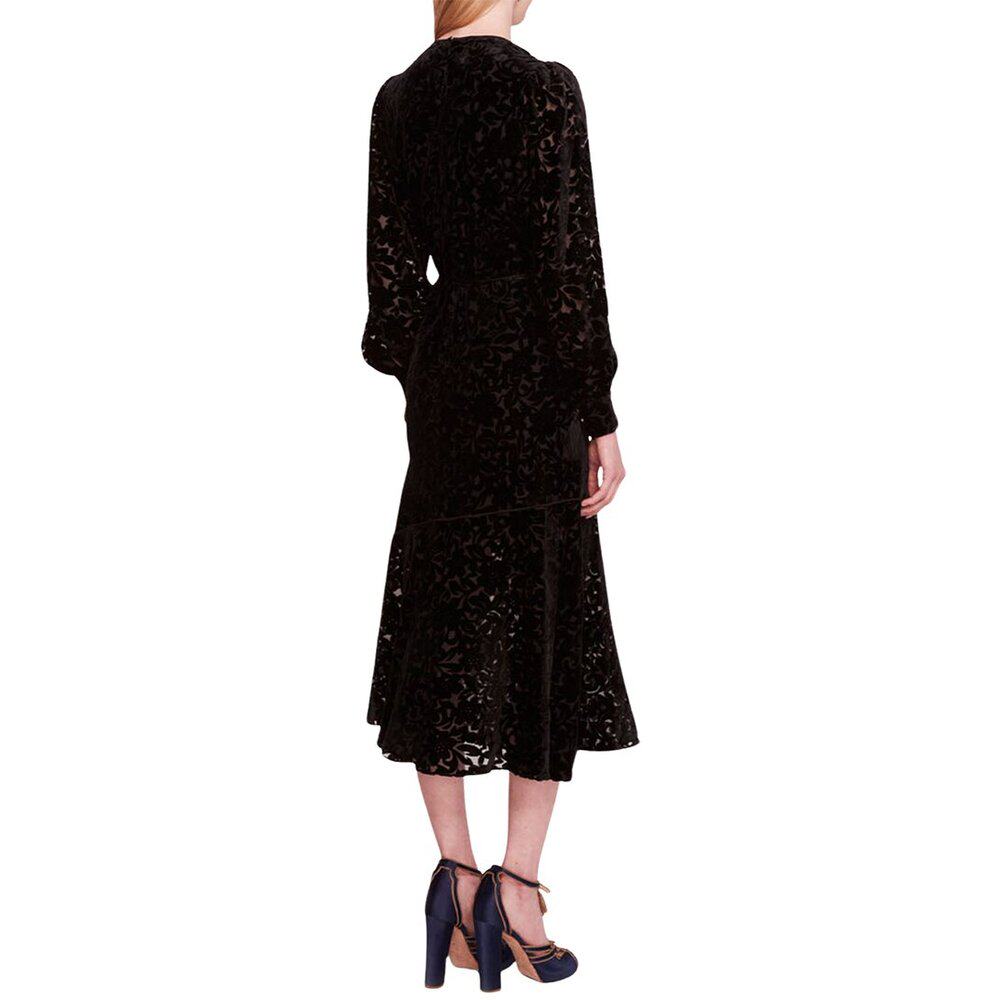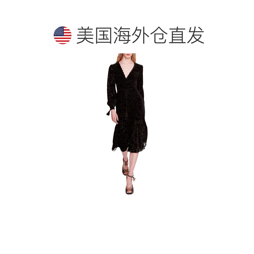 📚 自营Marchesa Notte Velvet Burnout Midi Dress - black 美国奥