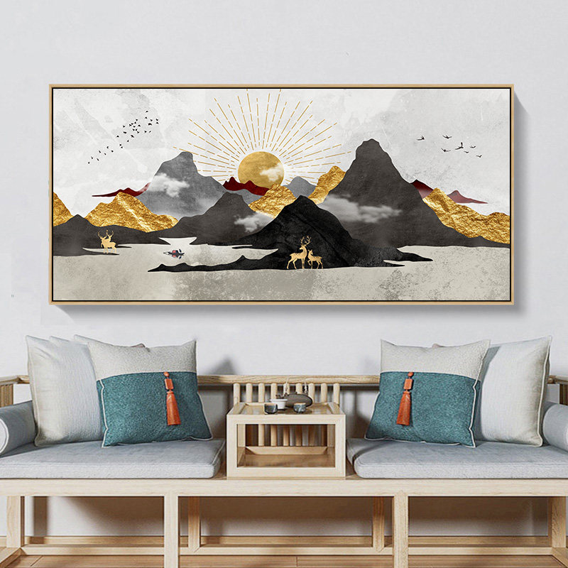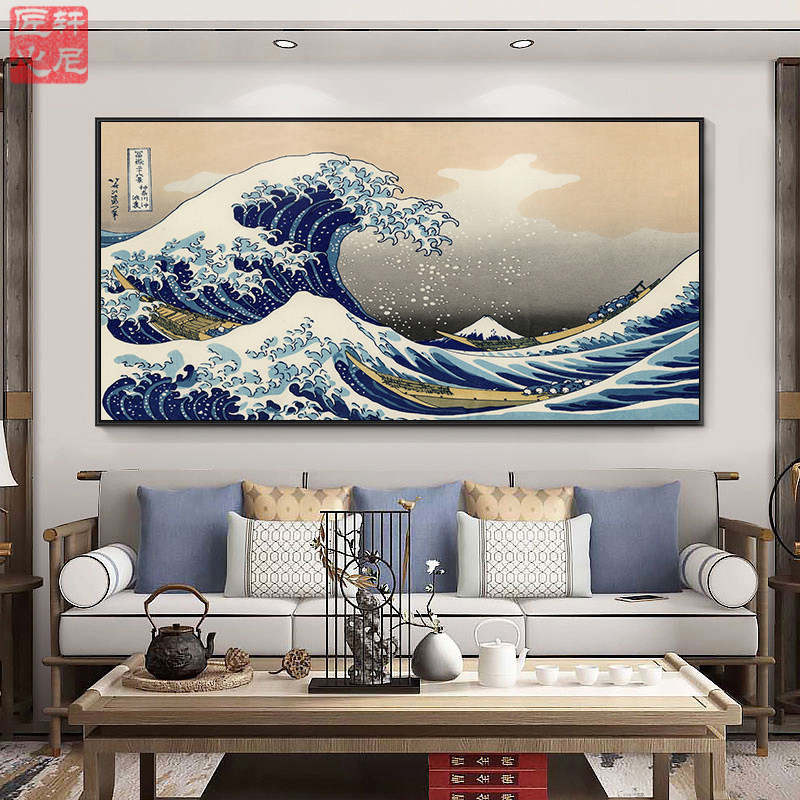 📚 神奈川冲浪里挂画新中式客厅沙发背景墙装饰画日式餐厅包厢壁画