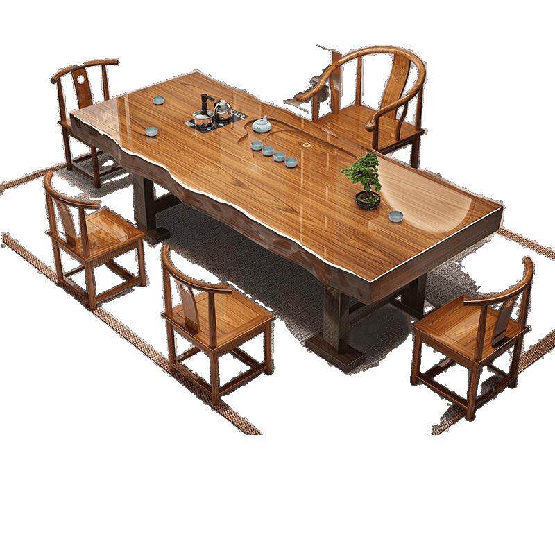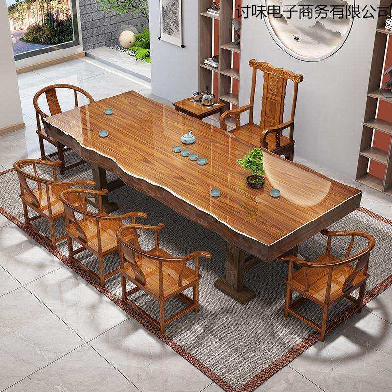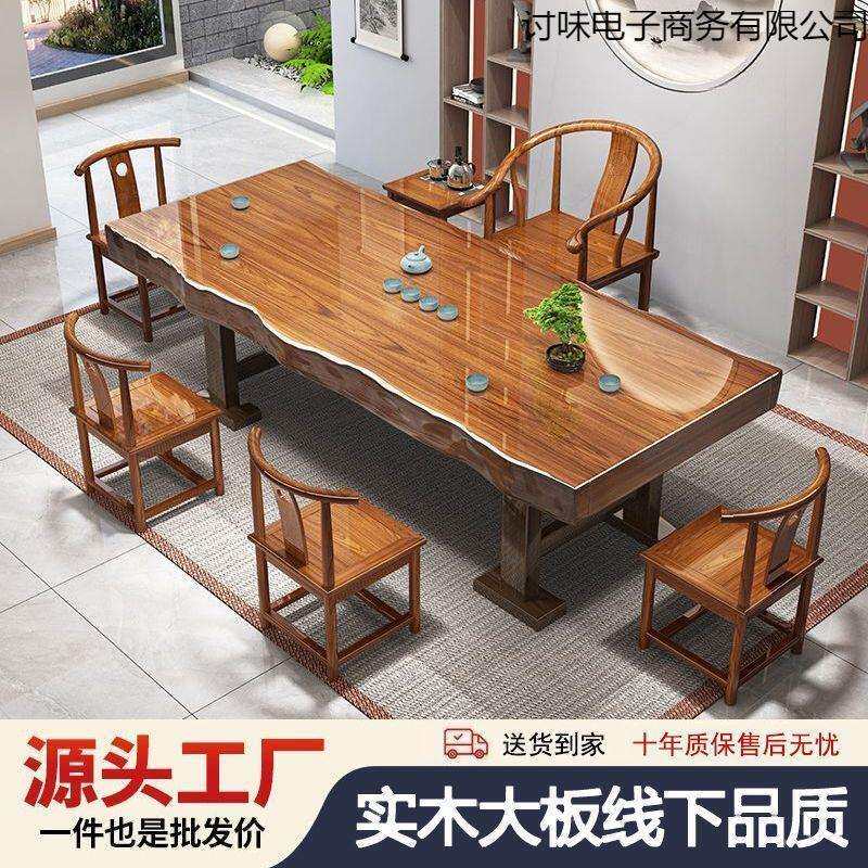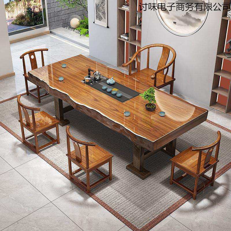📚 实木茶几整切大板原木茶桌椅组合中式台家用办公室泡茶一体整套