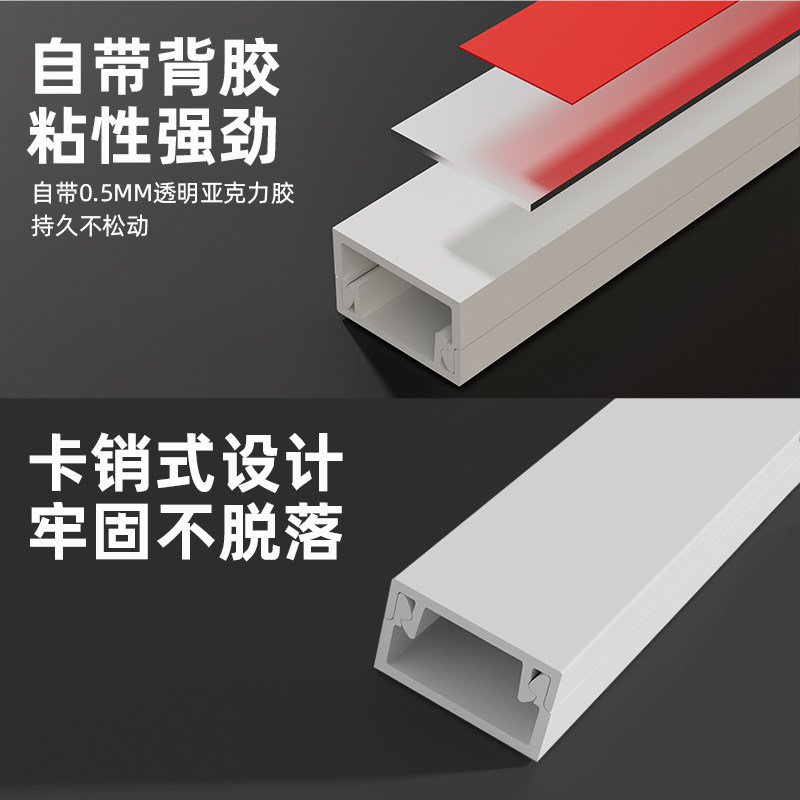 📚 pvc白色卡线槽明装塑料墙面走线布线明线自粘遮挡条光纤线压线槽