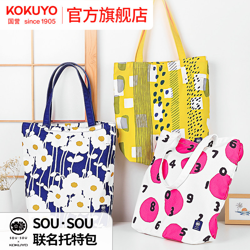 📚 【直播间】国誉旗舰店 SOUSOU联名第二弹托特包帆布袋手提大容量帆布包文艺单肩包大学生上课包手提购物袋