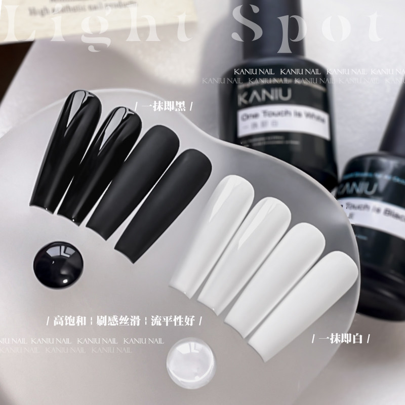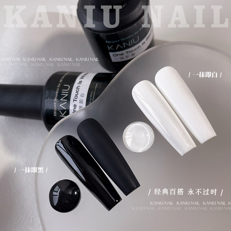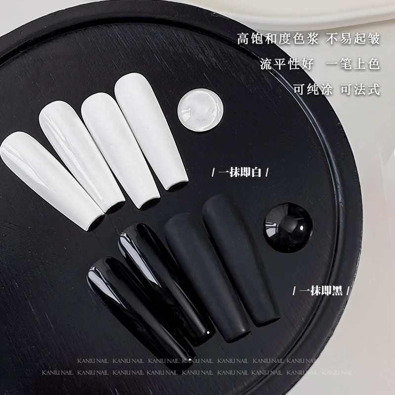 📚 卡妞一抹即黑白美甲胶高饱和顺滑秒流平无痕不缩胶经典纯色指甲胶