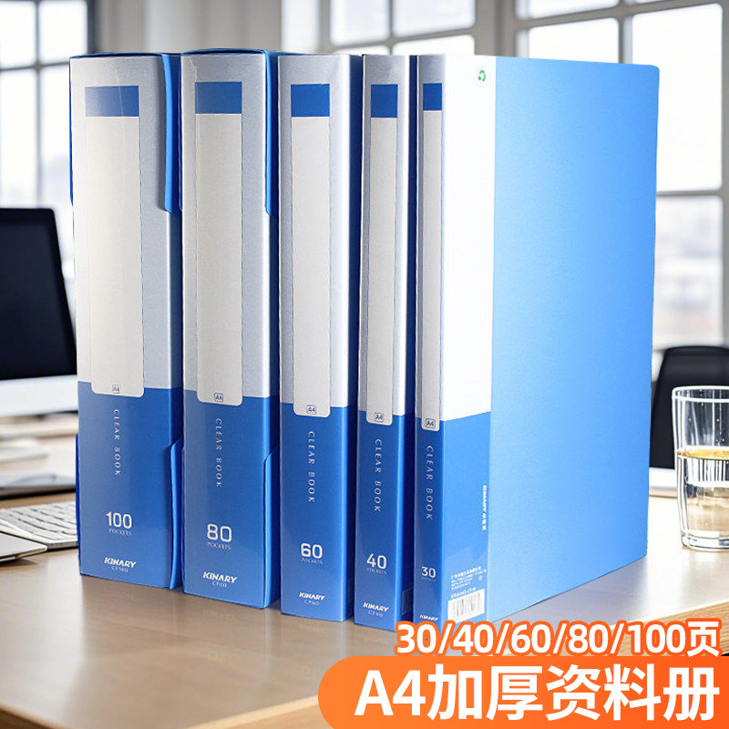 📚 金得利 经典色资料册A4文件夹透明插页学生用试卷收纳册 报告夹20页40页CF30文具学生办公学校老师资料收纳册