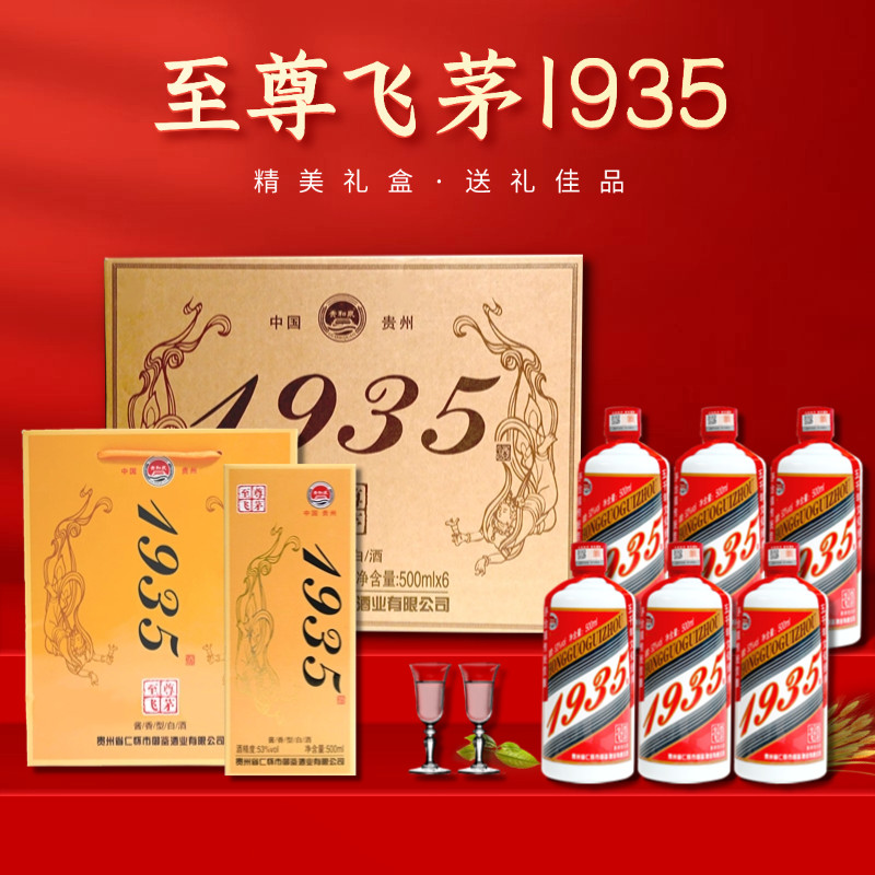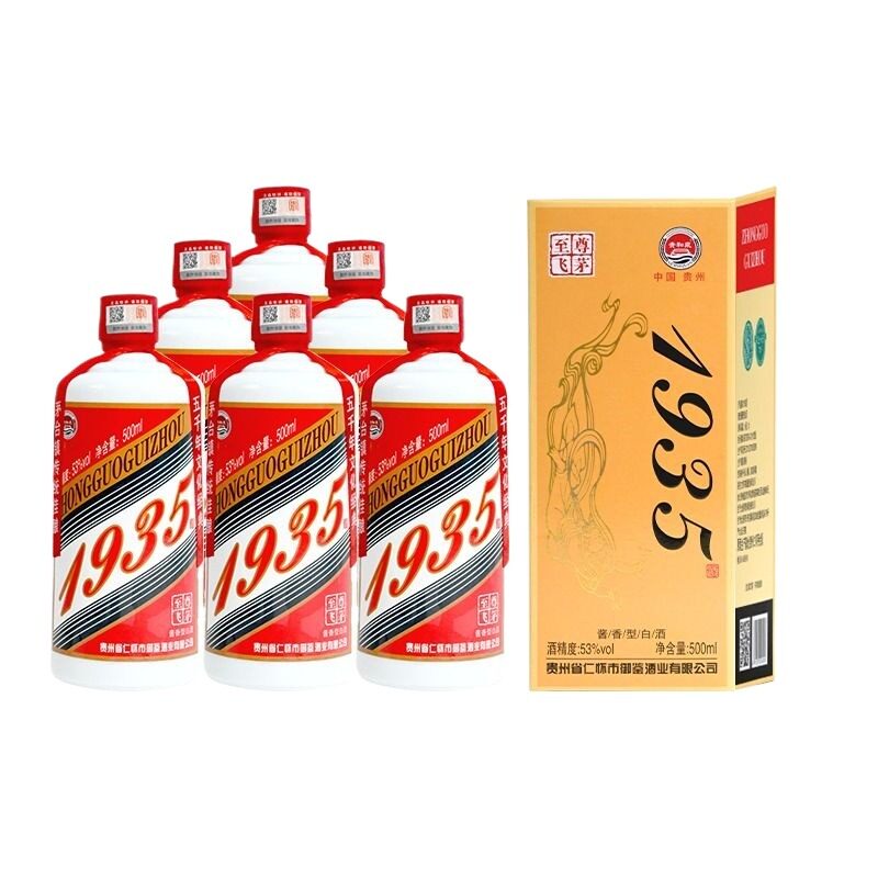 📚 贵州1935酱酒500ml*6瓶53度酱香型白酒婚宴送礼盒装纯粮食酒酒席
