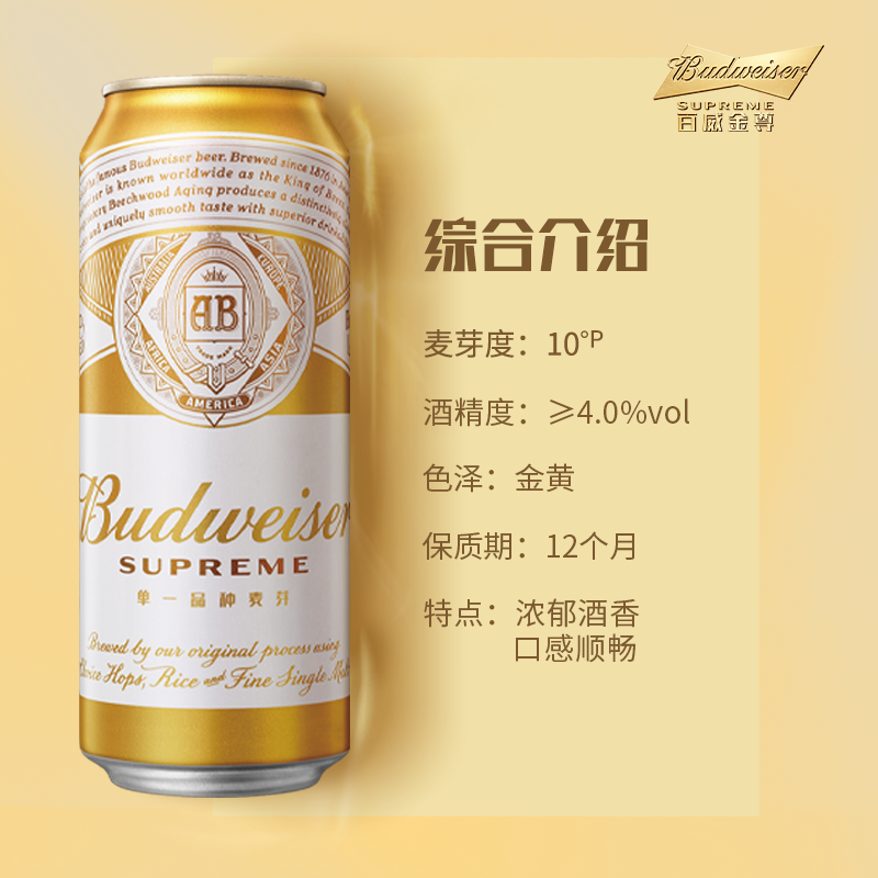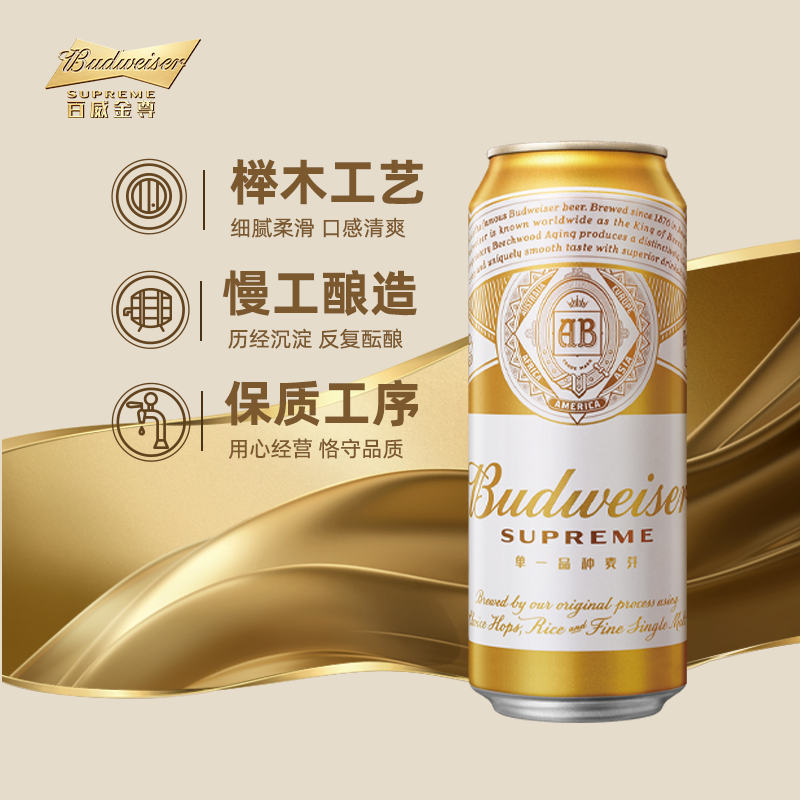 📚 百威金尊啤酒500ml*18听罐装10.0°P精选麦芽整箱批发