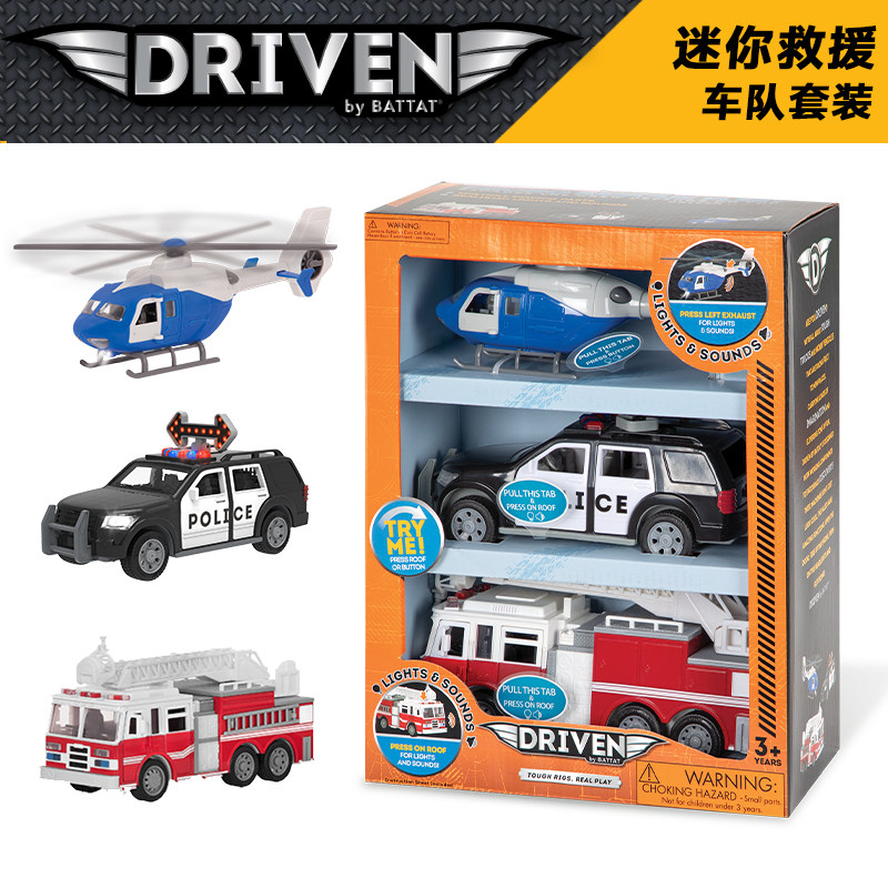 📚 北美Driven工程车模型系列仿真声效消防车挖掘机男孩小号儿童玩具