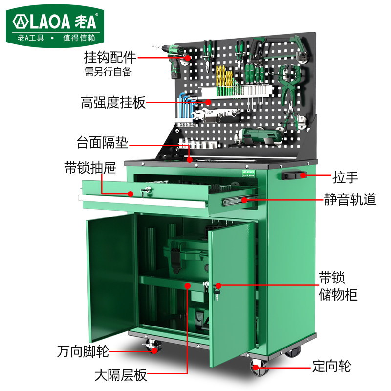 📚 老A 单抽双开门工具车多功能工具小推车车间汽修维修工具车带挂板