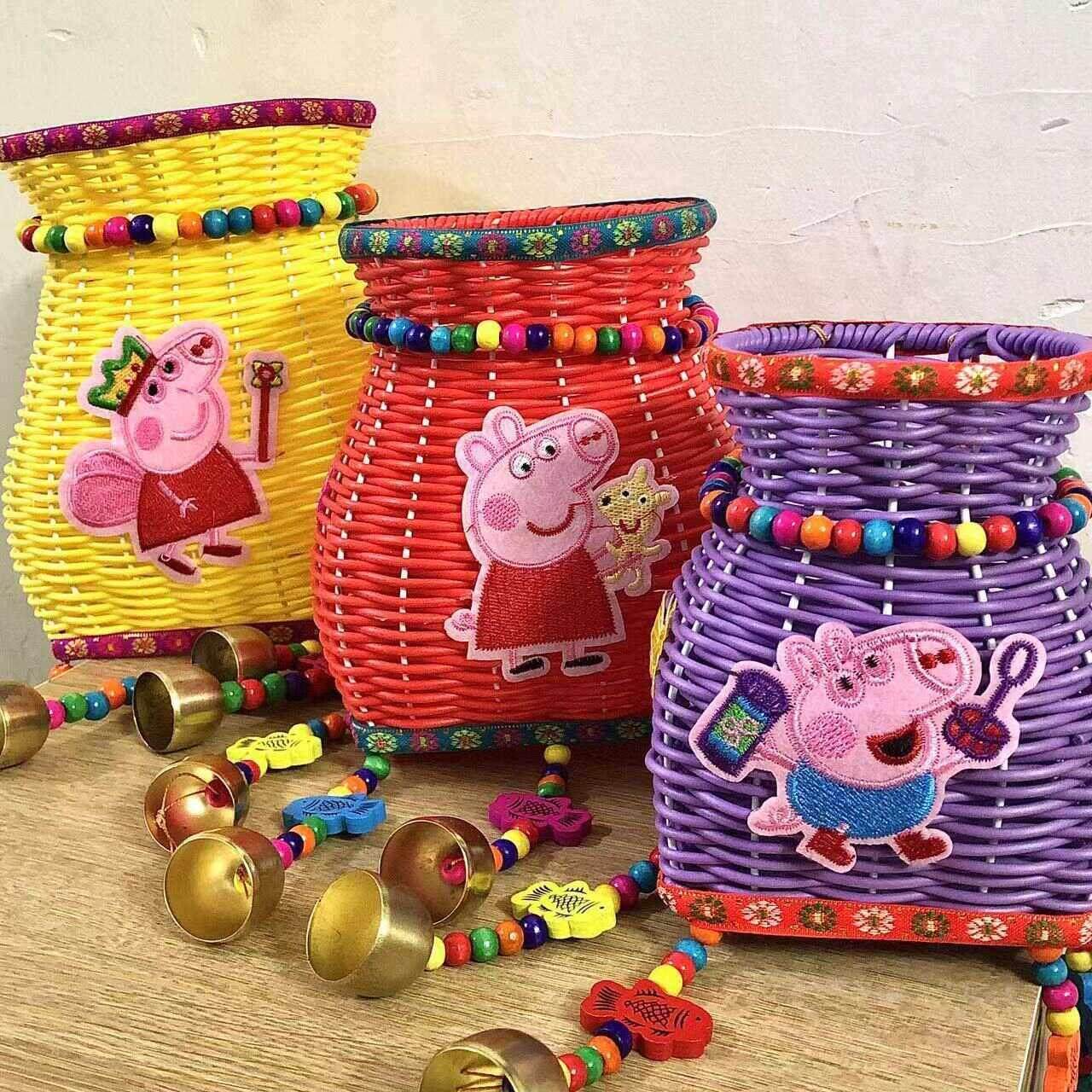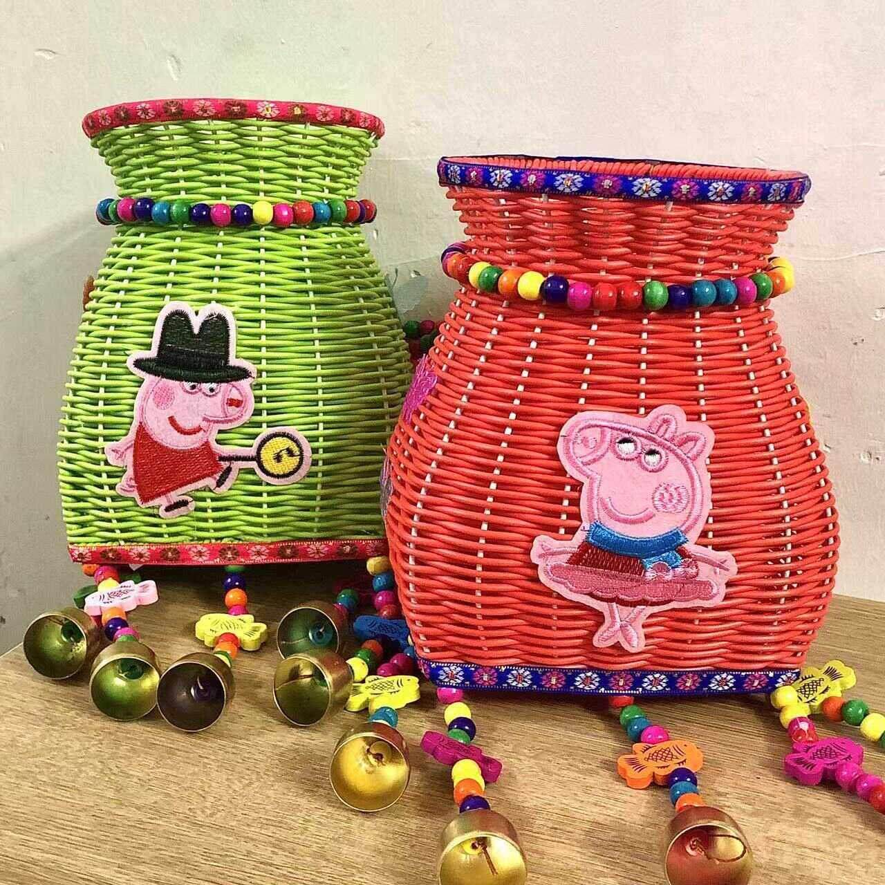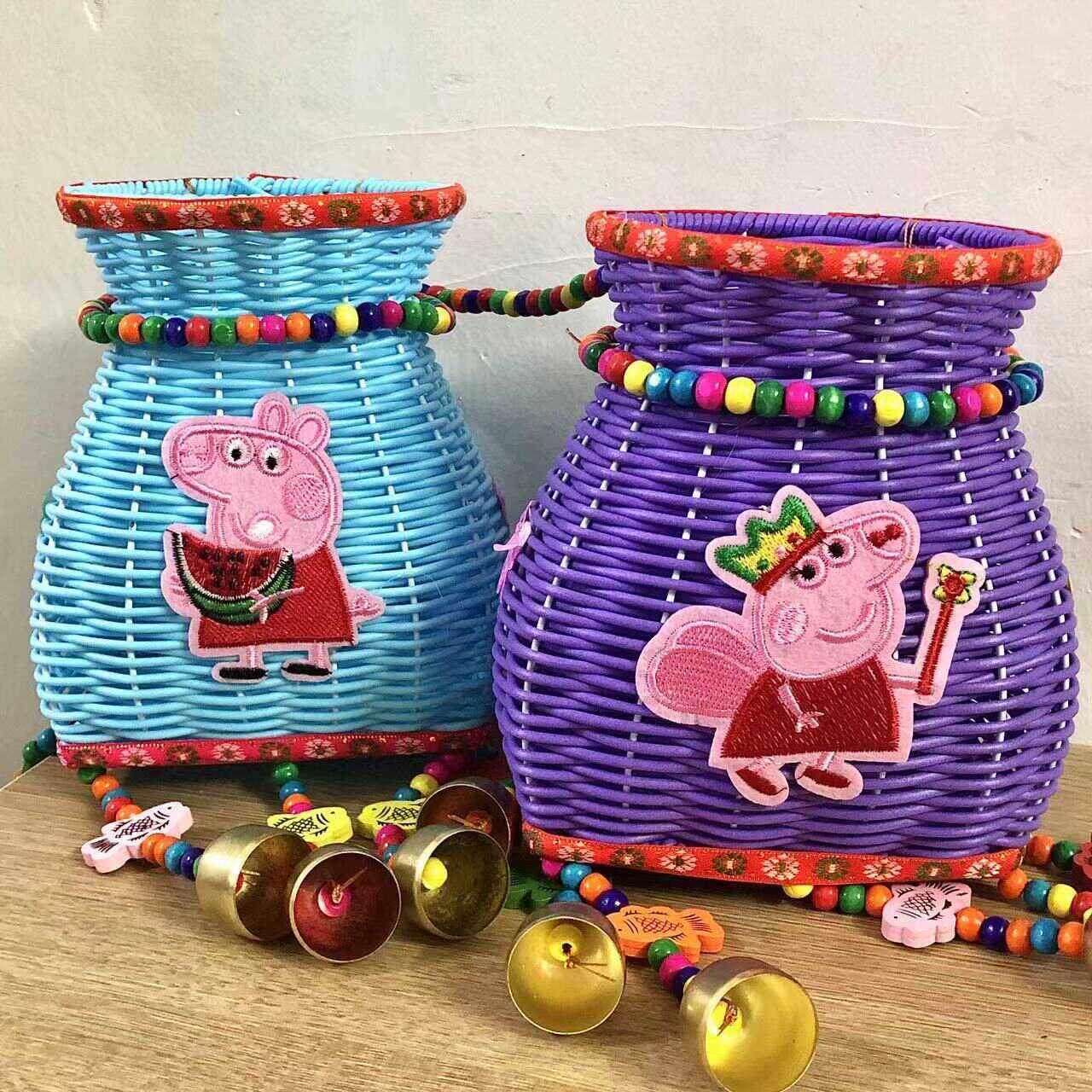 📚 儿童背篓手工双肩民族鱼篓舞台彩色编织竹编演出幼儿园舞蹈道具