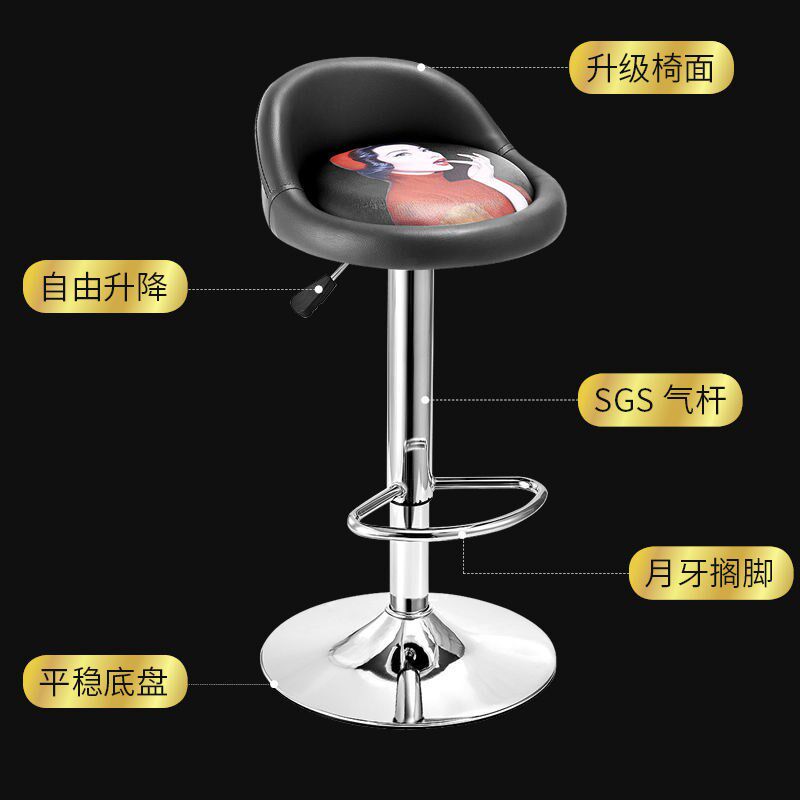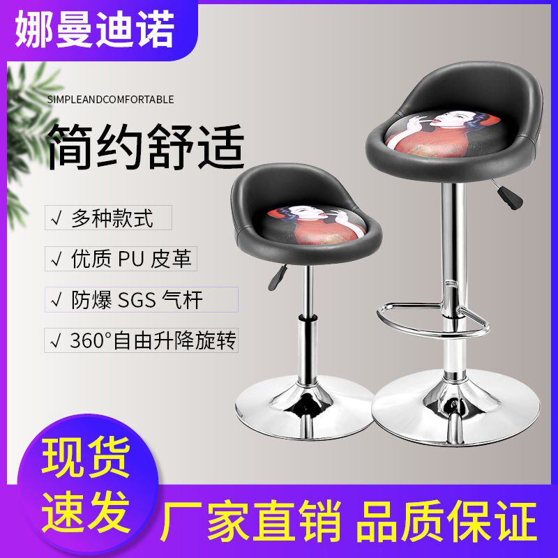 📚 高80cm酒吧椅吧台升降旋转靠背椅子家用高脚凳吧台美甲圆凳子