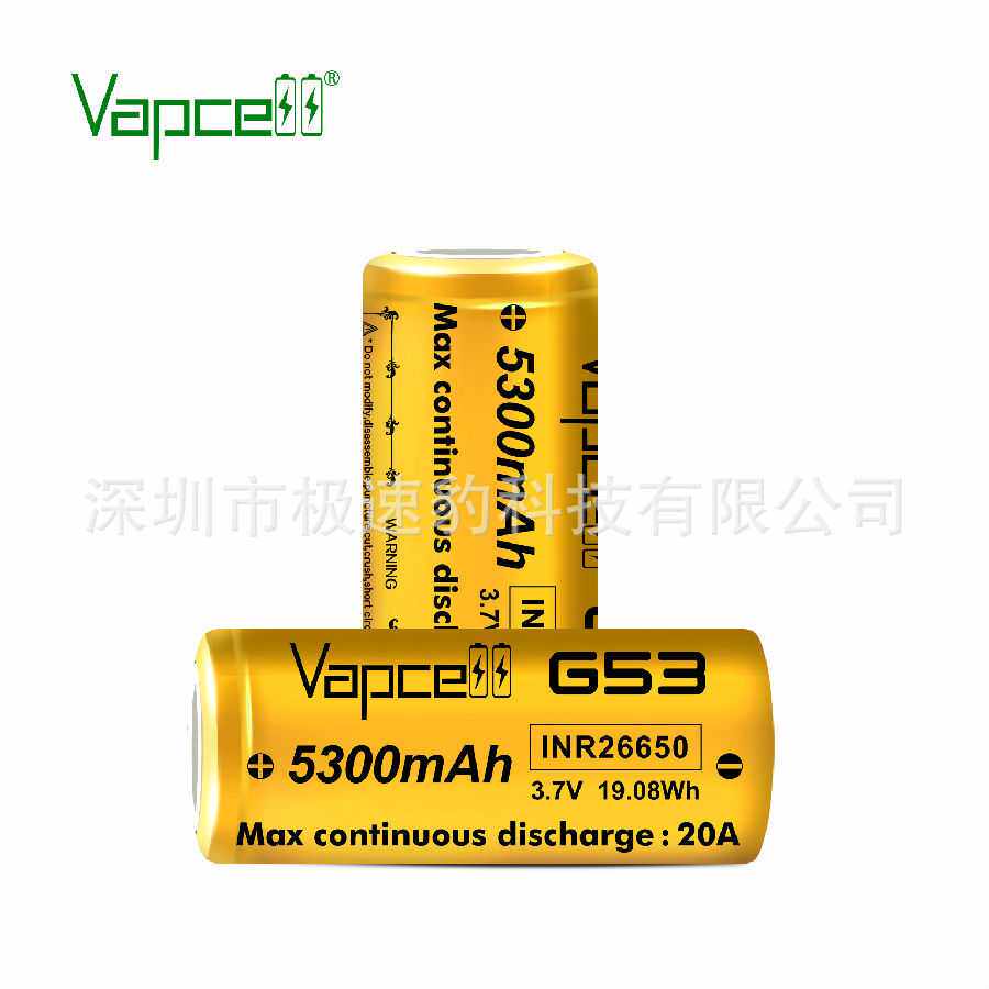 📚 Vapcell 26650 G53 5300mah 20A持续大容量手电筒锂电池动力电池