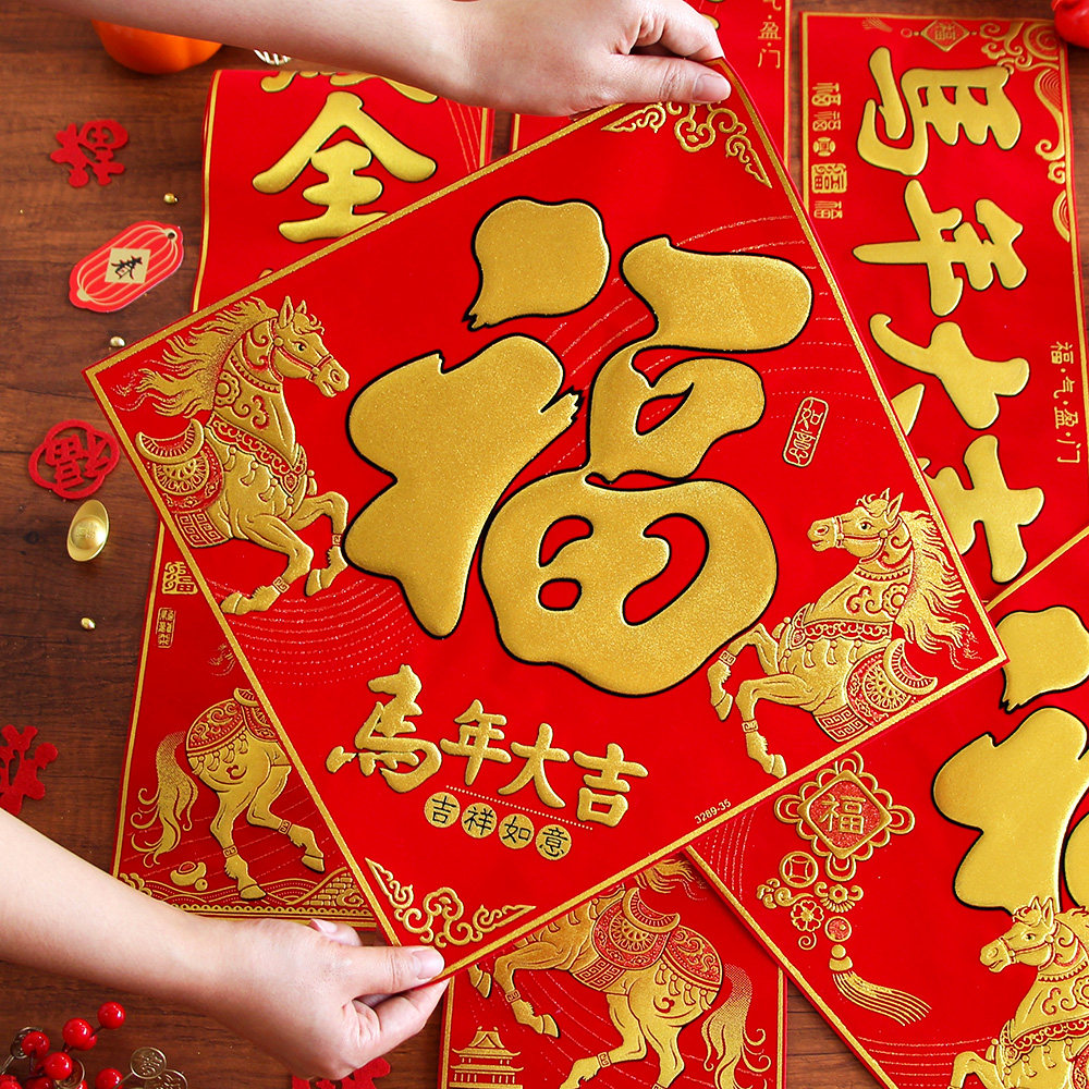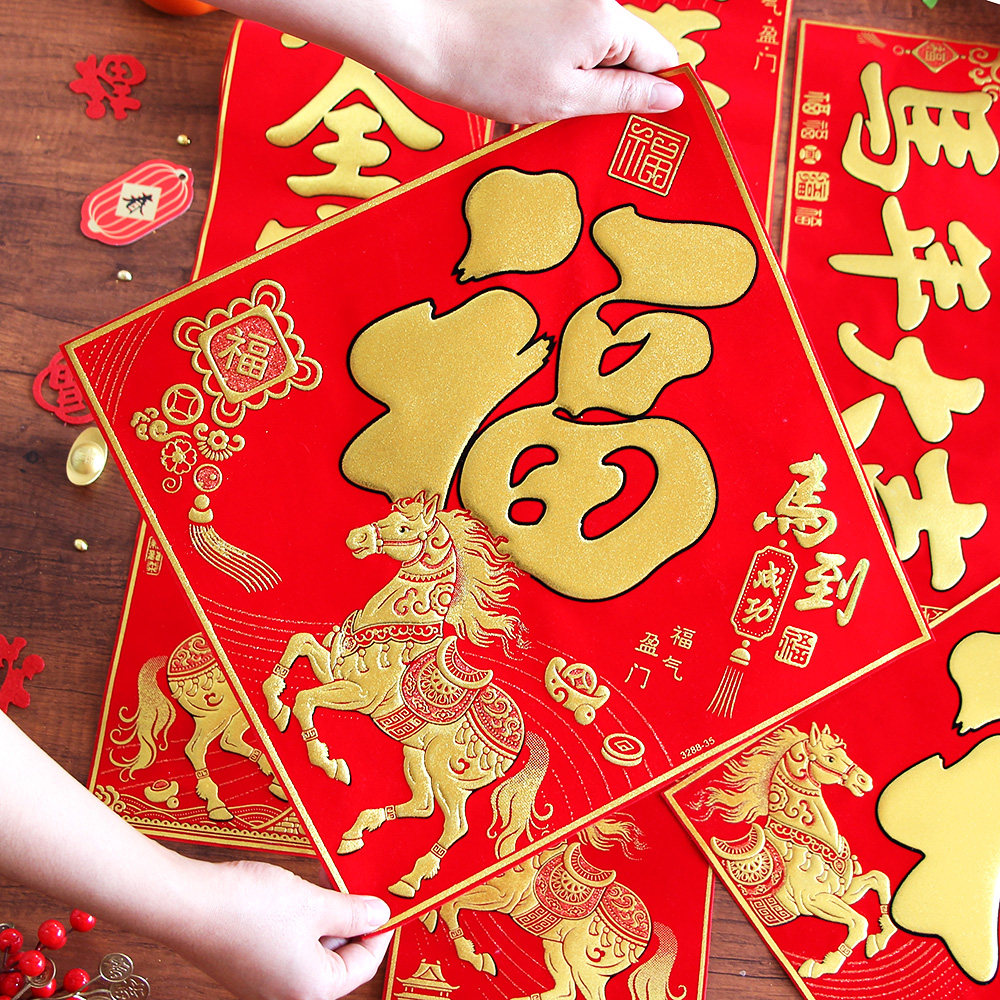 📚 2026马年立体绒布福字烫金自粘福字大门春节装饰新年墙贴公司门贴