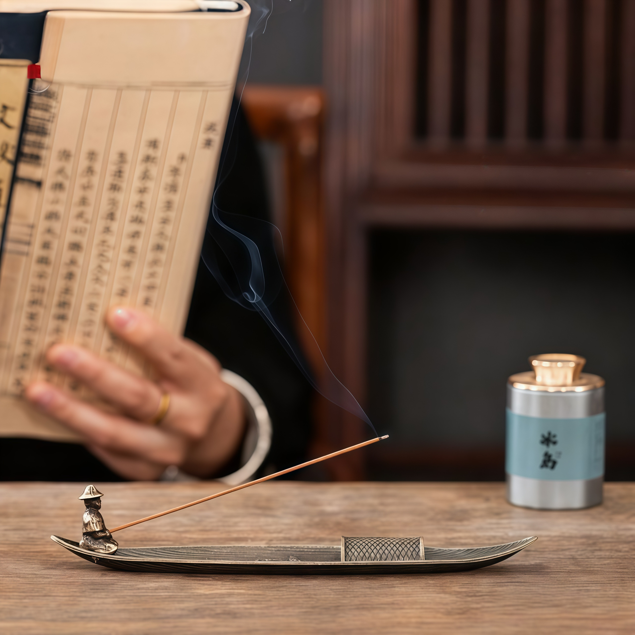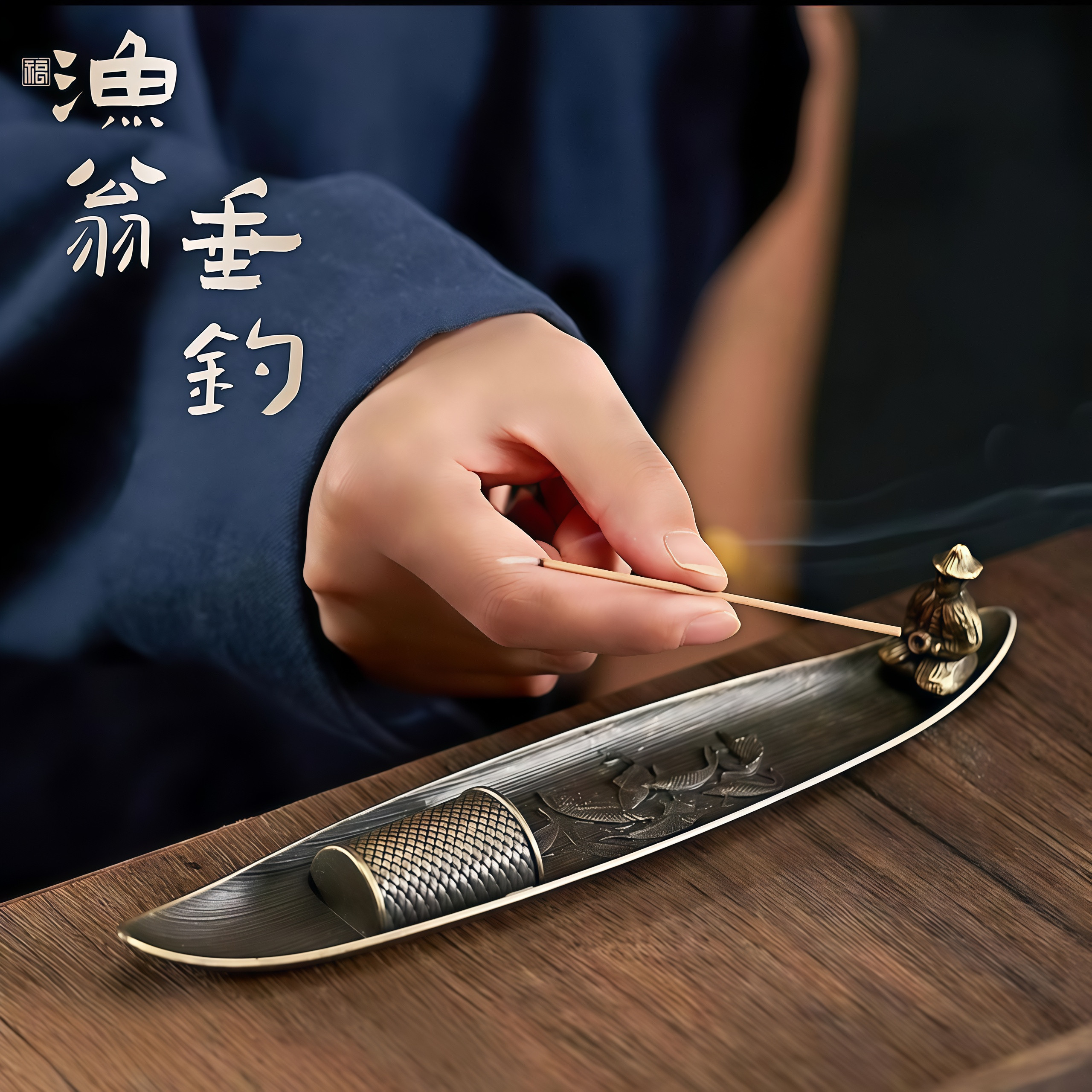 📚 创意中式渔翁垂钓香插香座家用室内沉香熏香炉檀香炉线香炉摆件盘