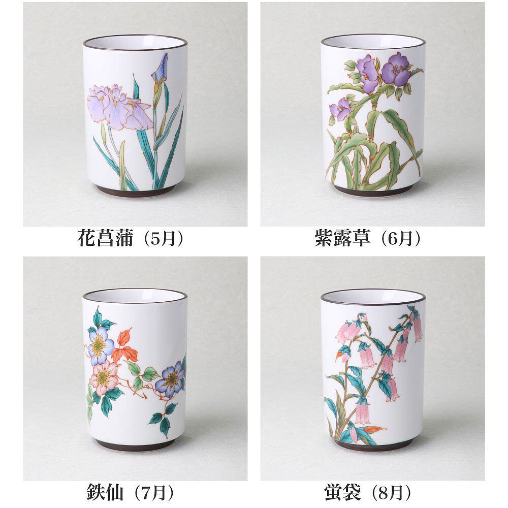 📚 日本直邮九谷烧大茶杯(十二月花)/清十釜 茶具茶杯人气礼品结婚