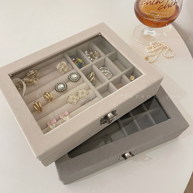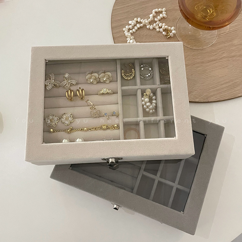 📚 丝绒新款首饰盒耳环戒指手饰项链收纳盒轻奢高端便携防尘珠宝盒子