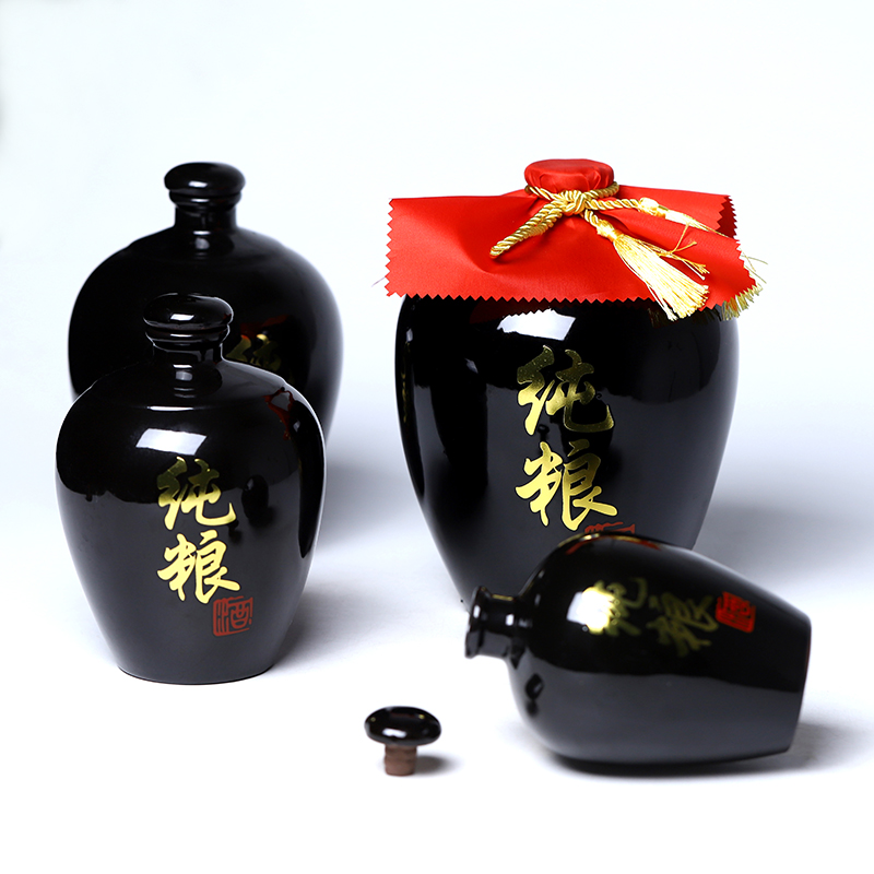 📚 家用酒坛酒罐密封黑釉烤花纯粮多用处宜兴1斤2斤3斤5斤土陶酒