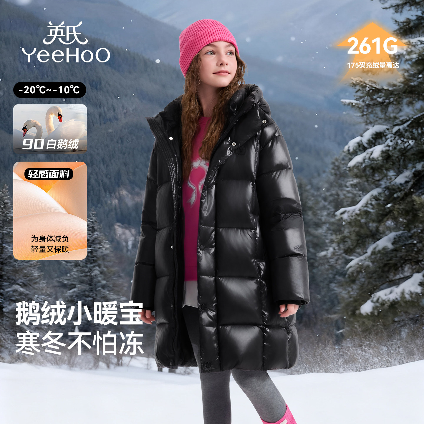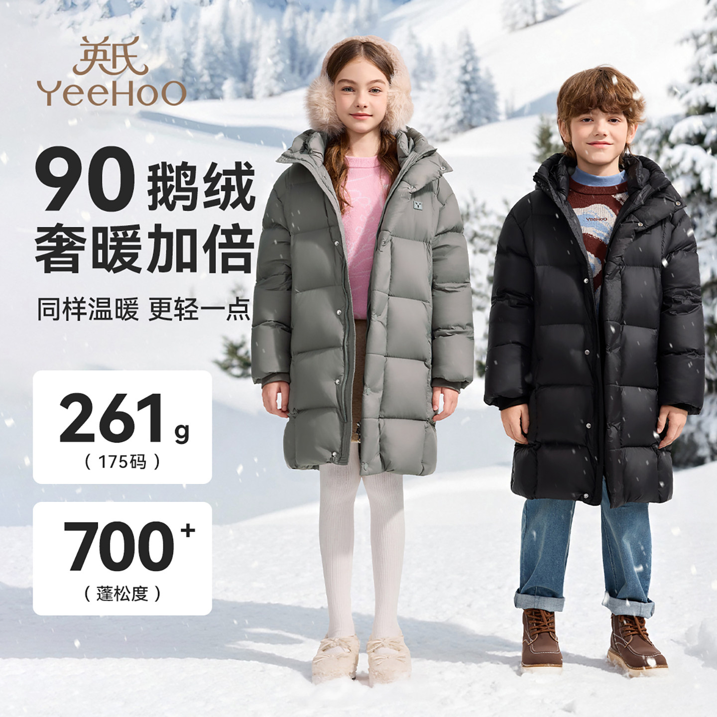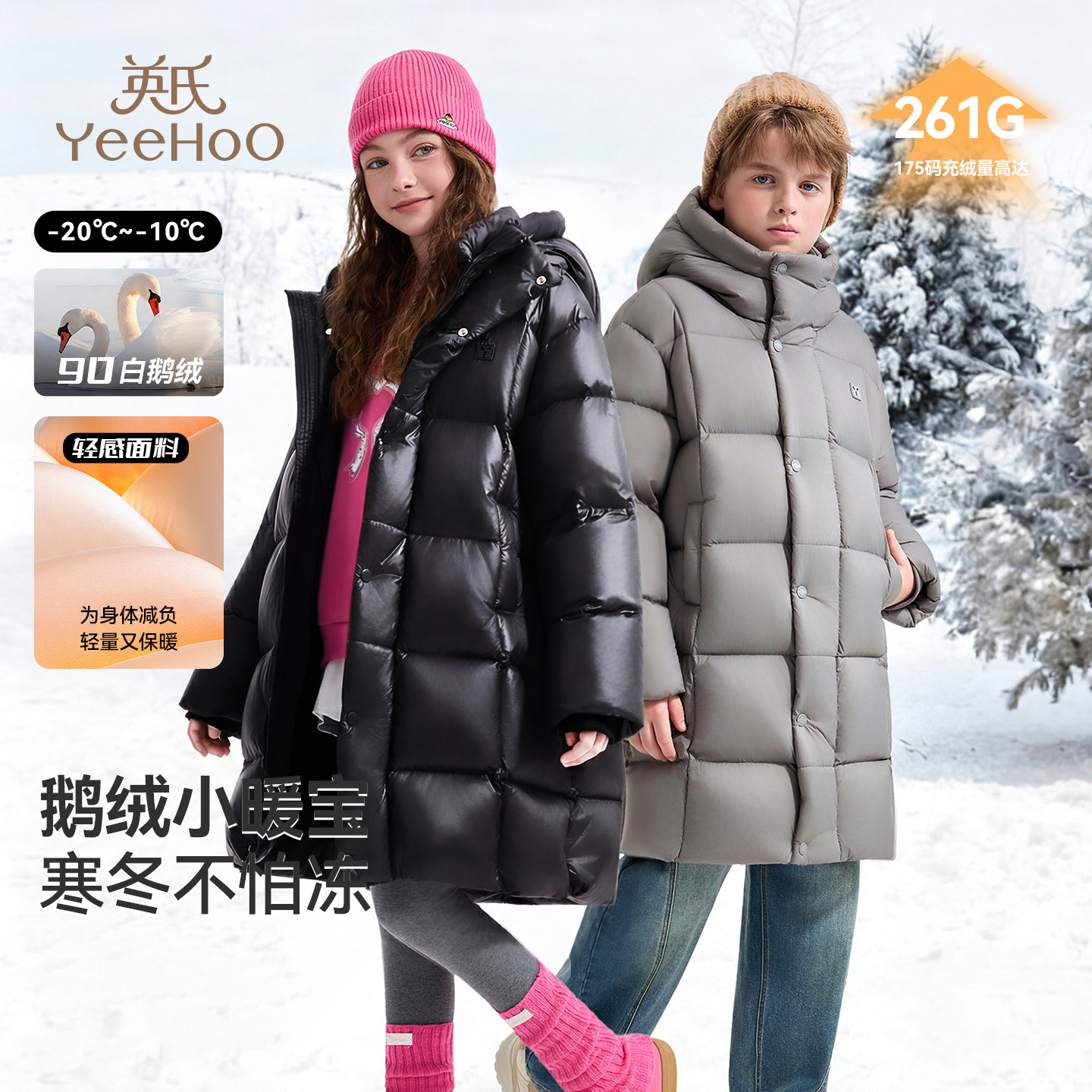 英氏男女童鹅绒御寒中长