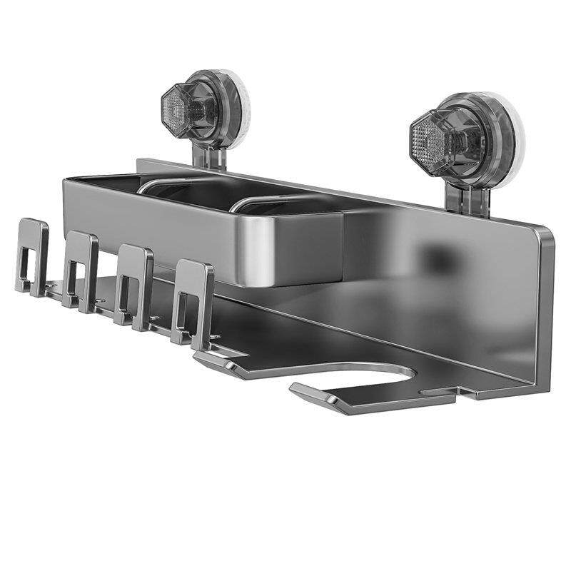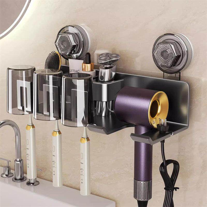 📚 吸盘牙刷置物架太空铝吹风机支架壁挂免打孔牙刷漱口杯收纳层架一