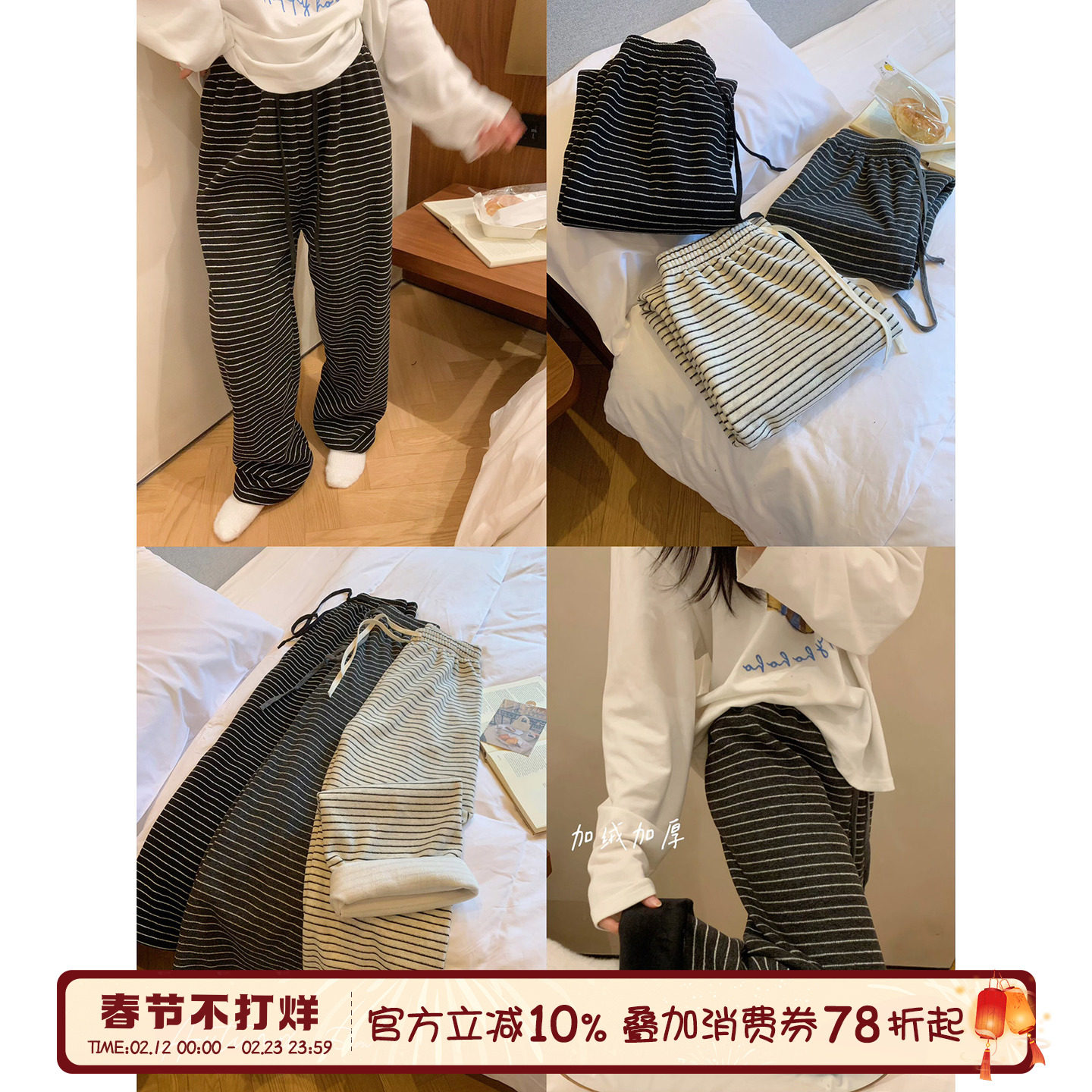 📚 馨帮帮Homedress 冬季加绒加厚条纹家居睡裤女慵懒风可外穿休闲裤