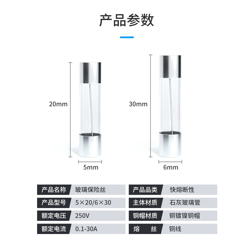 📚 5*20/6*30mm玻璃保险丝管250V 0.5A~30A 2A 3A 4A 5A 8A 10A 20A