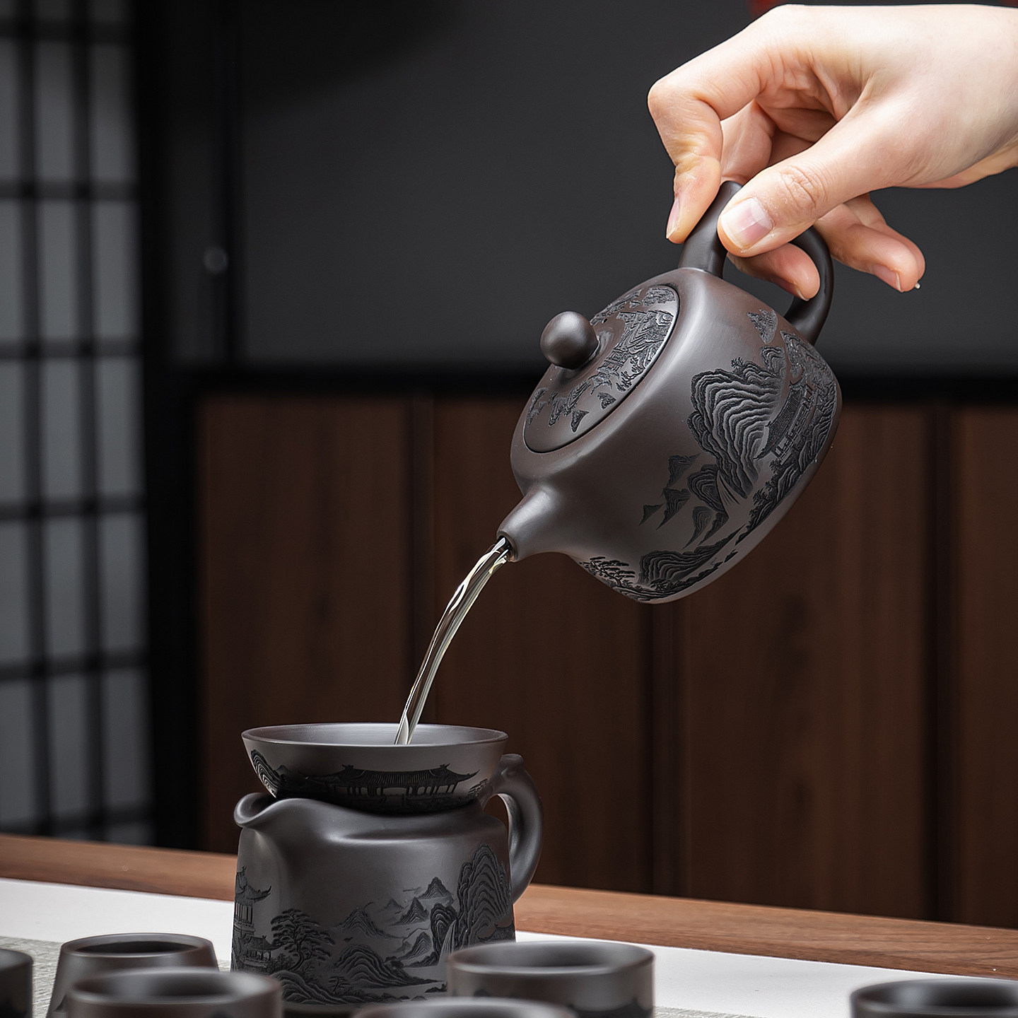 📚 紫砂浮雕龙嘴壶整套功夫茶具茶杯中国风轻奢泡茶器高档茶具套装