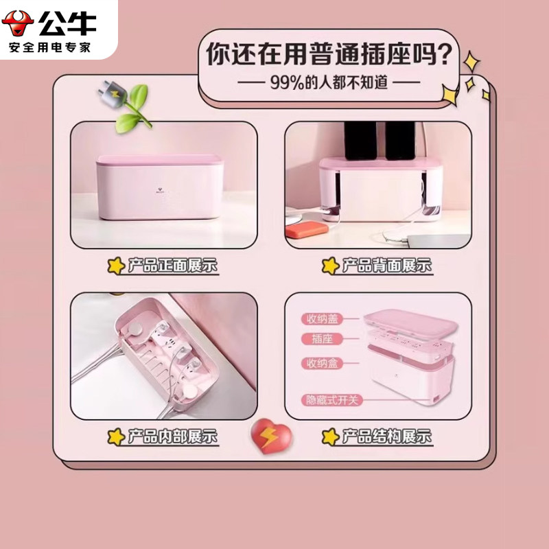 🔥💥爆款来袭!公牛家用创意收纳盒插座防尘防触电美貌与实用并存💫